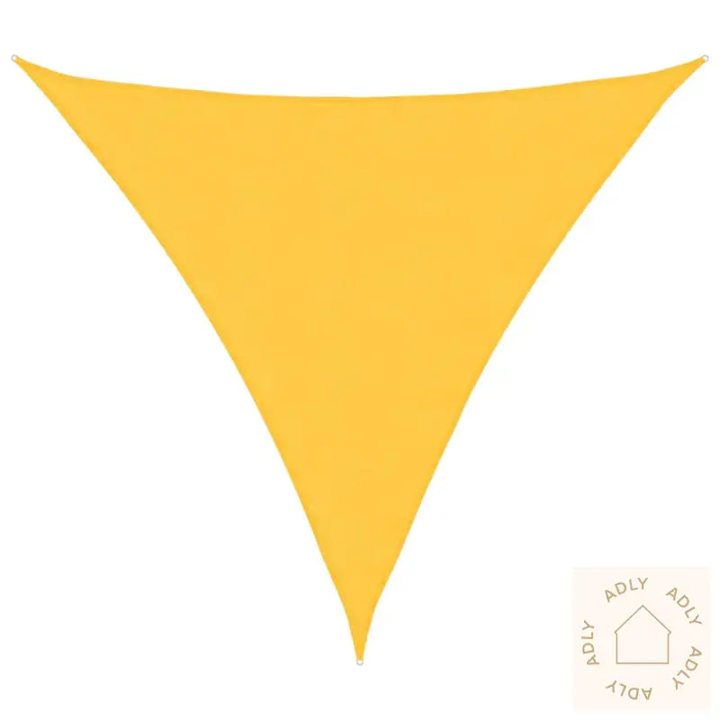 Farge: gulMateriale: PU-belagt oxfordstoffMål: 4,5 x 4,5 x 4,5 mForm: trekantetVannbestandigUV-beskyttendeFester i rustfritt stål i hvert hjørne3 x 1,5 m PE-tau er inkludertMontering nødvendig: nei