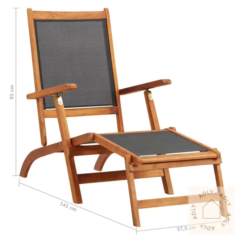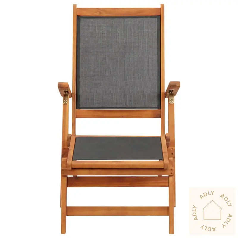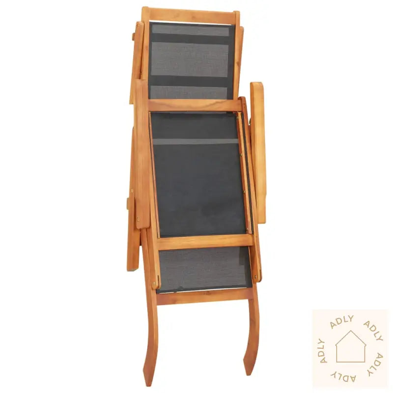 Farge textilene: svartMaterialer: Akasietre med naturlig oljebehandling + textilene-stoffSamlet mål: 141 x 57,5 x 92 cm (L x B x H)Ergonomisk design med justerbart ryggstøttePute inkludert: neiVanntett og værbestandigRobust og slitesterkt materialeLett å rengjøreJusterbar ryggstøtte