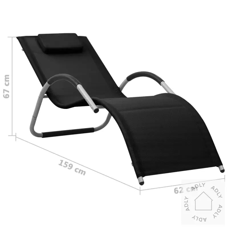 Farger: svart og gråMaterialer: textilene, aluminium, pulverlakkert stålMål stol: 159 x 62 x 67 cm (L x B x H)Bredde sete: 56 cmDybde sete: 90 cmSetehøyde fra bakken: 29 cmArmlenes høyde fra bakken: 48 cmVærbestandigMed avtagbar pute som gir ekstra komfortEnkel montering kreves