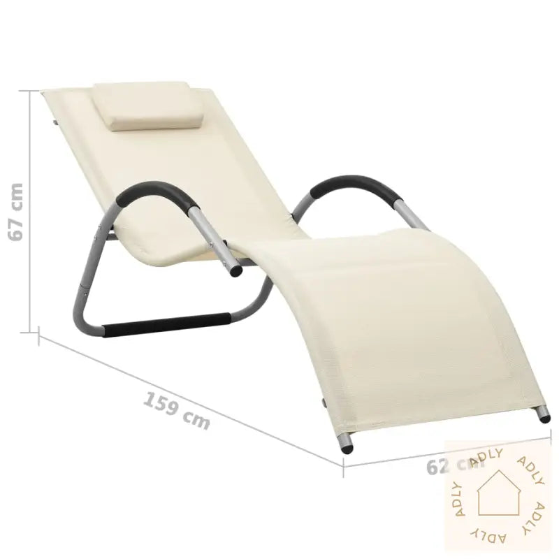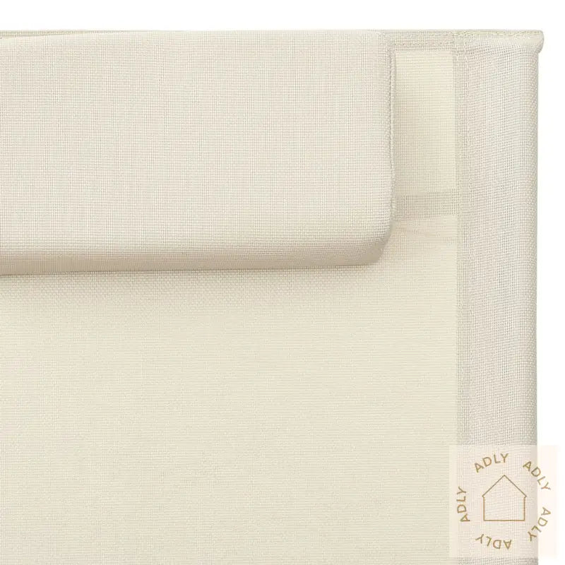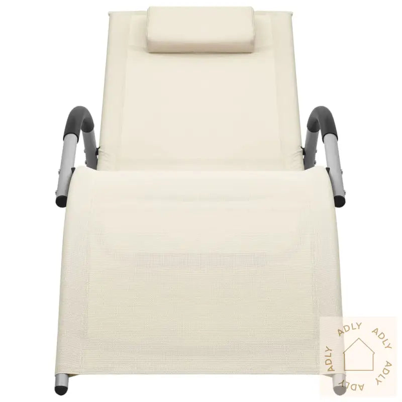 Farger: Krem og gråMaterialer: Textilene, aluminium, pulverlakkert stålMål stol: 159 x 62 x 67 cm (L x B x H)Bredde sete: 56 cmDybde sete: 90 cmSetehøyde fra bakken: 29 cmArmlenes høyde fra bakken: 48 cmVærbestandig – perfekt for norske forholdAvtagbar pute for ekstra komfortMontering kreves: jaLeveransen inneholder:2 x solsenger