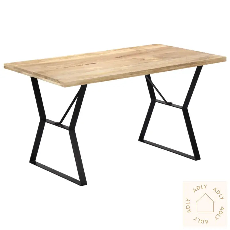 Dette spisebordet i tre, med sin industrielle stil, kommer til å bli et skikkelig blikkfang enten du setter det på kjøkkenet eller i spisestua. Bordet er laget av heltre mango, som er kjent for en tett og karakteristisk kornstruktur du sjelden finner i andre møbler til hjemmet. Heltre mango gir ikke bare en naturlig og varm følelse, men er også utrolig solid – dette betyr at bordet tåler daglig bruk og holder seg pent år etter år, selv om det utsettes for litt røff håndtering. Bordplaten har blitt nøye polert og lakkert for å fremheve treets naturlige særpreg.