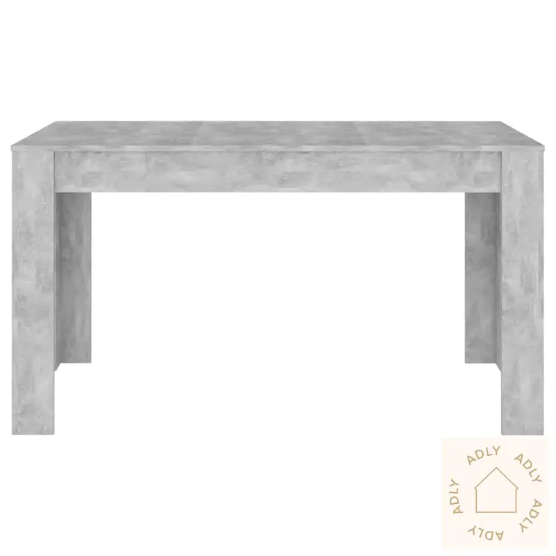 Robust ramme: Spisebordet står stødig takket være sin solide konstruksjon, så det egner seg godt både til rolige familiemiddager og livlige sammenkomster.Robust bordplate: Den slitesterke bordplaten gir god plass til å sette frem mat, drikke og dekorative detaljer, noe som gjør det enkelt å pynte til ulike anledninger og alltid ha nok plass til gjestene dine.Enkelt å vedlikeholde: Overflaten er lett å rengjøre – bruk bare en fuktig klut for å holde spisebordet pent, slik at du får mer tid til å nyte måltidene uten å bekymre deg for søl.Farge: betonggrå – en stilren nyanse som matches fint med flere typer møbler, både moderne og klassiske.Materiale: konstruert tre, som gir både varighet og et flott utseende til din samling av møbler.Mål: 140 x 74,5 x 76 cm (L x B x H) – passer utmerket i de fleste hjem og gir god plass til venner og familie.Montering kreves: ja, men bordet er enkelt å sette sammen slik at du raskt kan ta det i bruk.