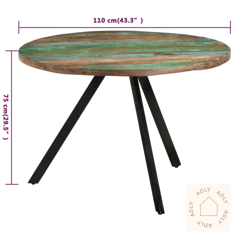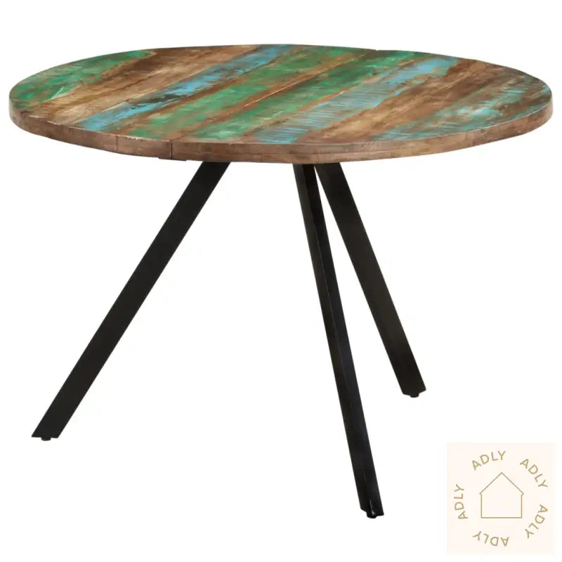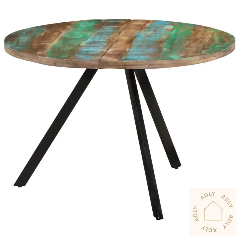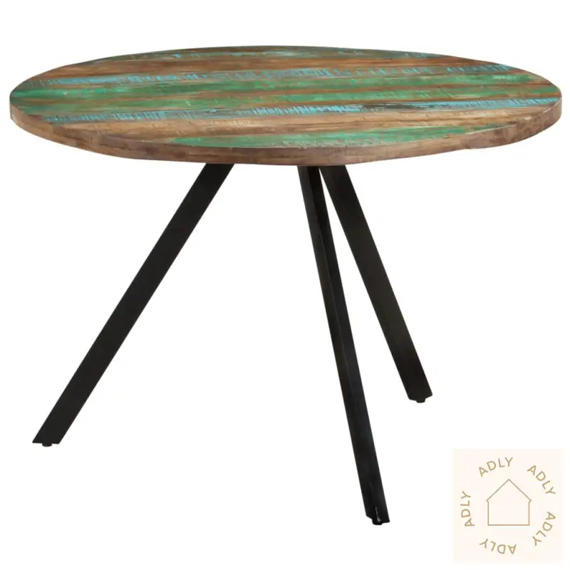 Premium materiale: Gjenvunnet heltre består av nøye utvalgte biter av ulike sorter som teak, mango, furu og bøk. Alt treverket stammer fra gamle bygninger som fabrikker, boder og båter, noe som gjør det til et miljøvennlig valg for deg som ønsker møbler til hjemmet med omtanke for miljøet. Dette håndlagde bordet betyr at hvert enkelt er helt unikt, både når det gjelder farge og karakter. Overflaten kan ha spennende innslag av blått, grønt, krem, oransje, rødt og rosa—ingen bord er like!Stabil ramme: Den solide, pulverlakkerte jernbunnen gir god stabilitet og solid holdbarhet, så du får glede av spisebordet ditt i mange år fremover, selv med daglig bruk.Solid bordplate: Bordplaten i massivt gjenvunnet tre gir ikke bare et spennende visuelt uttrykk, men er samtidig robust nok til å tåle alt fra middager til dekorering med vaser, planter eller favoritt-tilbehøret ditt.Merk: