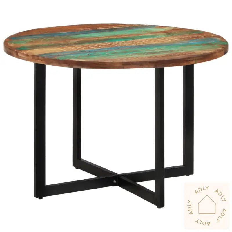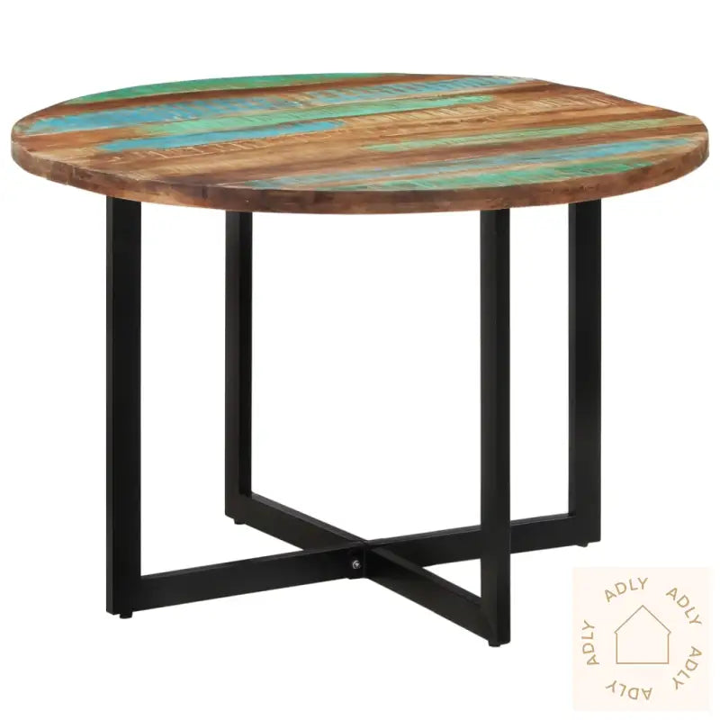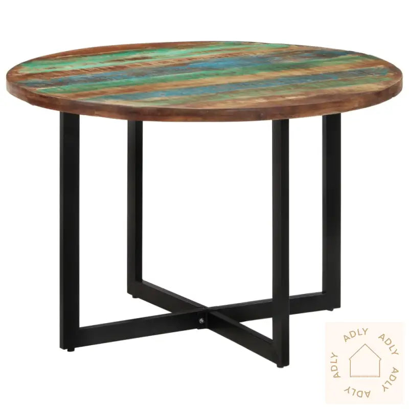 Førsteklasses materiale: Bordet er laget av gjenvunnet heltre, inkludert teak, mango, furu og bøk. Disse materialene kommer fra gamle bygninger som fabrikker, skur og båter, og gir møbler til hjemmet en rustikk sjarm. Gjenvunnet heltre er et miljøvennlig valg for deg som ønsker bærekraftige møbler. Hvert bord har håndlagde detaljer og unike farger, hvor du kan finne innslag av blått, grønt og noen ganger oransje, rødt eller rosa. Dette gir spisestuebordet karakter og gjør det til et ekte blikkfang enten du bruker det innendørs eller som et originalt alternativ til hagemøbler eller utendørsmøbler under tak.Solid bordplate: Den robuste bordplaten tåler daglig bruk og er ideell for å plassere alt fra middagsservise til pynt som lys, vaser eller blomsteroppsatser, slik at du får et bord som er både praktisk og dekorativt.Solid ramme: Den kraftige pulverlakkerte jernrammen gir bordet en industriell touch og sørger for høy stabilitet og lang levetid. Kombinasjonen av jern og gjenvunnet heltre gir et særpreget uttrykk som passer inn i ulike interiørstiler.Merk: