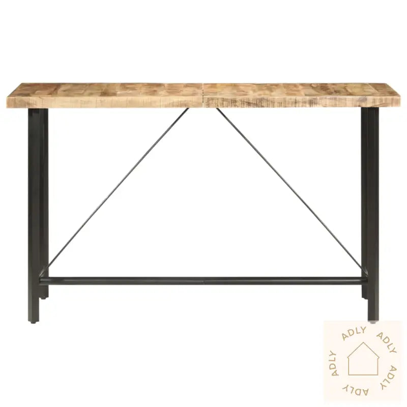 Dette barbordet i grov heltre mango har et kult, industrielt design som passer perfekt inn på kjøkkenet eller i spisestuen. Bordet er laget av robust mangotre – et eksklusivt, tropisk løvtre kjent for sin styrke og evne til å tåle mye bruk over tid. Dette gjør bordet både stabilt og ekstra holdbart, samtidig som den naturlige og grove overflaten fremhever de unike trekornene. Ingen bord blir helt like, så du får virkelig et unikt møbel! De pulverlakkerte jernbenene gir solid støtte og forsterker bordets rå uttrykk.
