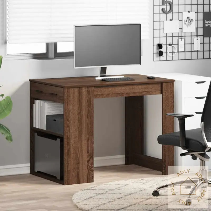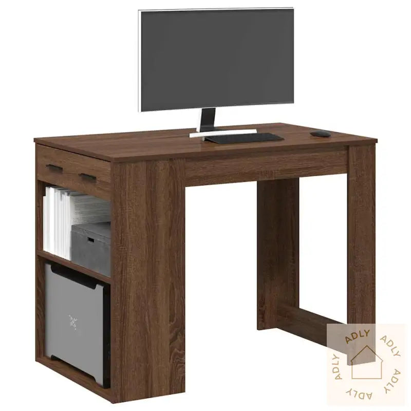 Stabilt og slitesterkt materiale: Dette skrivebordet er laget i konstruert tre, kjent for sin jevne overflate, styrke og lang levetid. Materialet tåler daglig bruk uten å bøye seg, sprekke eller trekke til seg fukt – så du kan stole på at det holder seg pent år etter år, enten du bruker det som kontorplass eller som del av andre møbler i hjemmet.Rikelig med oppbevaring: Det har både en praktisk skuff og åpne hyller, så du har god plass til å organisere alt fra PC-vesker, bøker, dokumenter, dekor eller småting – ideelt for deg som liker å holde orden eller ønsker at skrivebordet skal matche resten av bokhyller og stående hyller hjemme. Mindre rot gir både ro og bedre arbeidsflyt.Fleksibel bruk: Med sitt enkle, men moderne uttrykk, passer skrivebordet inn nærmest hvor som helst, enten det er stue, spisestue, soverom, studenthybel eller mindre kontor. Den allsidige og tilpasningsdyktige designen gjør det lett å kombinere med eksisterende møbler, og det blir fort et naturlig midtpunkt for arbeid, hobby eller studier.Enkel rengjøring: Skulle du søle eller støve ned, ordner du raskt og enkelt med en fuktig klut takket være den glatte overflaten. Skrivebordet krever ellers minimalt vedlikehold, så du får tid til det du vil.Advarsel: