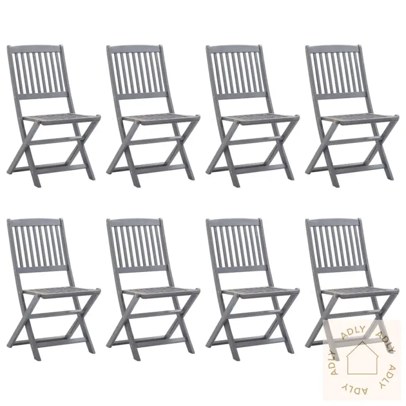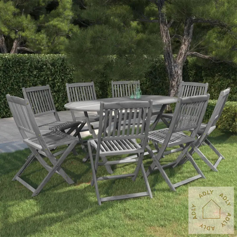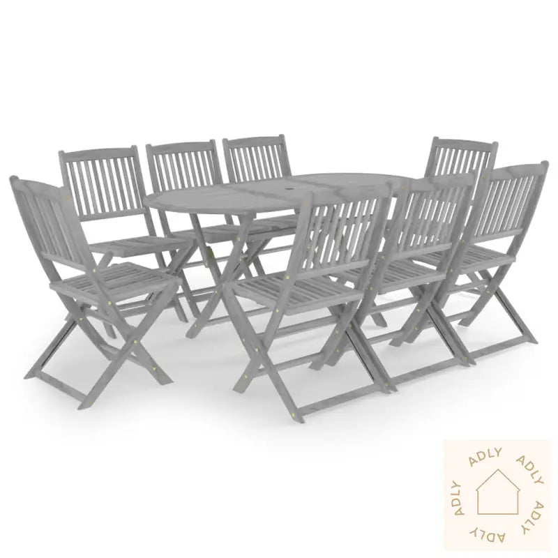 Farge: gråMateriale: heltre akasie med gråvasket finishMål bord: 160 x 85 x 75 cm (L x B x H)Mål stol: 48,5 x 57,5 x 91 cm (B x D x H)Sammenleggbar: jaMontering kreves: jaLeveransen inneholder: 1 x bord8 x stoler