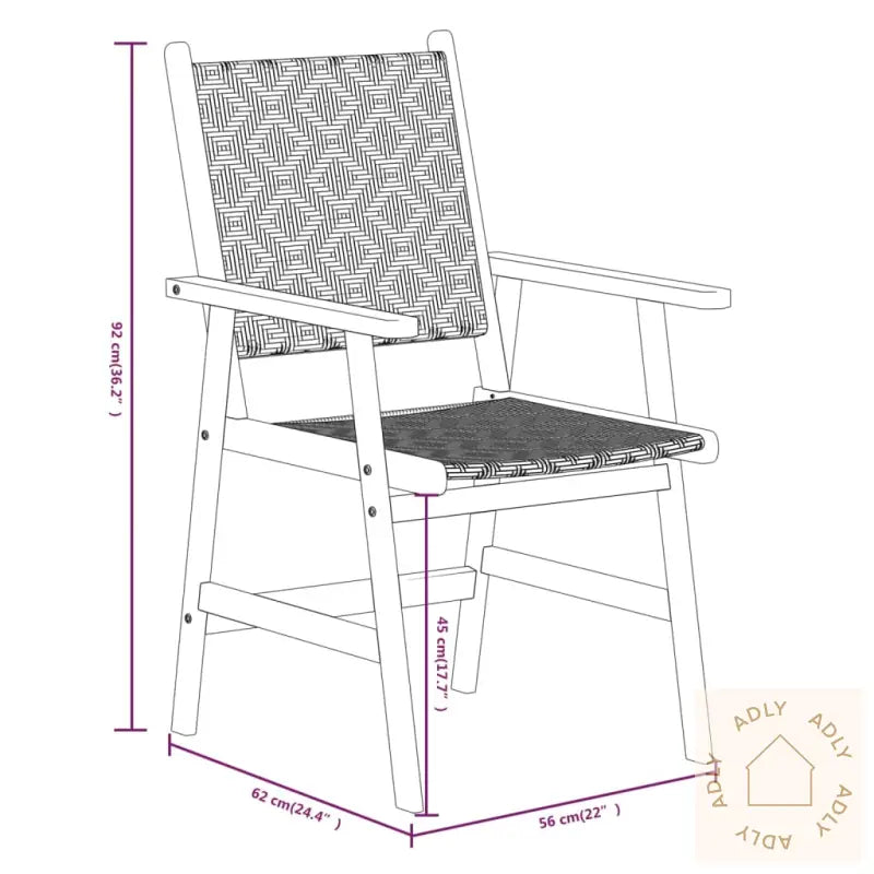 Stolene er designet med en solid ramme i heltre akasie og trukket i elegant polyrotting som gir rom for komfortabel sittestilling. Polyrotting er også enkelt å rengjøre og tåler utendørs bruk svært godt. Ryggstøtten sørger for ekstra støtte, og det attraktive gittermønsteret på stolene gir en dekorativ touch som virkelig kan sette prikken over i-en i uterommet ditt. Velg dette hagestuesettet for å få møbler til hjemmet og hagen som både ser bra ut og gir deg maksimal glede sesong etter sesong.