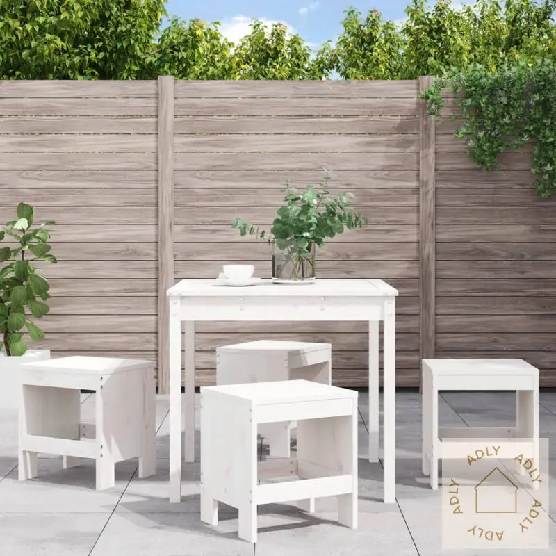 For å holde dine hagemøbler flotte over tid, anbefaler vi å bruke et vanntett trekk når de ikke er i bruk. Dette beskytter det vakre heltre furu-materialet og forlenger levetiden på utendørsmøblene dine.Farge: HvitMateriale: Heltre furuMål hagebord: 82,5 x 82,5 x 76 cm (L x B x H)Mål hagekrakk (hver): 40 x 36 x 45 cm (L x B x H)Maksimal lastekapasitet (per sete): 110 kgMontering kreves: JaLeveransen inneholder:1 x hagebord4 x hagekrakker