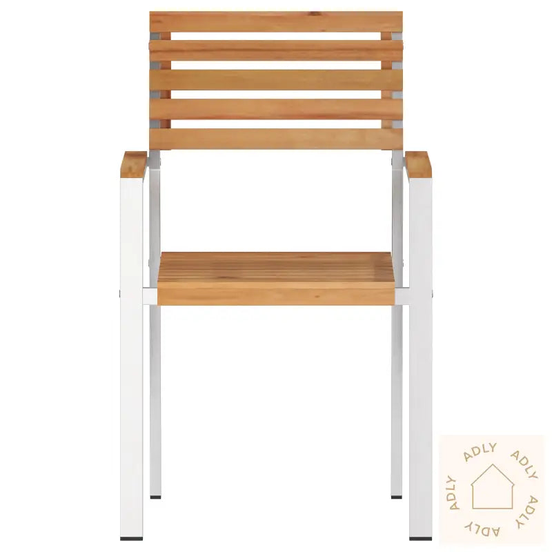 Dette vidaXL stabelbare hagesettet gir et løft til uteområdet ditt med sin slitesterke ramme i børstet rustfritt stål og massiv teak – en perfekt kombo for deg som ønsker moderne, vedlikeholdsfrie utendørsmøbler. Teaken er kjent for sin styrke og naturlige eleganse, og tåler vær og vind år etter år uten at det går på bekostning av stilen. Det minimalistiske designet glir rett inn på uterommet, enten det er balkongen, terrassen eller hagen.