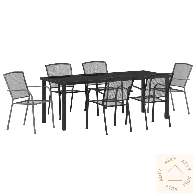 Praktisk stabling: Når stolene ikke er i bruk, kan de stables pent for effektiv lagring. Det gir ekstra fleksibilitet når du vil rydde plass i hagen eller på terrassen uten å ofre stilen.Antall gjenstander: 7Farge: AntrasittForm: RektangulærMateriale: MetallstålOverflate: PulverlakkertInnendørs/utendørs: Innendørs / UtendørsTrekk inkludert: NeiRom: SpisestueBatterier inkludert: NeiHodegjerde inkludert: NeiKapasitet: 110 kgMaks antall personer: 6Maksimal vekt: 110 kgBein høyde: 44.0 cmSetedybde: 45.0 cmSittekapasitet: 6Gynge: NeiStige: NeiMerke:Leveranse inneholder: 1 x Bord, 6 x StolerMontering kreves: JaAnbefalt antall personer for montering: 2