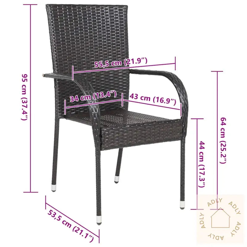 Farge: brunMaterialer: PE-rotting, pulverlakkert stålMål: 55,5 x 53,5 x 95 cm (B x D x H)Bredde sete: 34 cmDybde sete: 43 cmHøyde sete fra bakken: 44 cmHøyde armlene fra bakken: 64 cmMontering kreves: jaLeveransen inneholder:4 x spisestolerEnten du vil oppdatere hagemøblene dine eller skape et gjennomført uttrykk med trendy og praktiske møbler til hjemmet, vil disse spisestolene gi deg både komfort og stil i mange sesonger fremover.