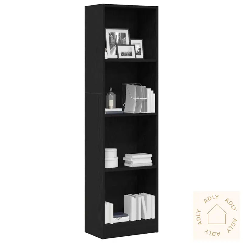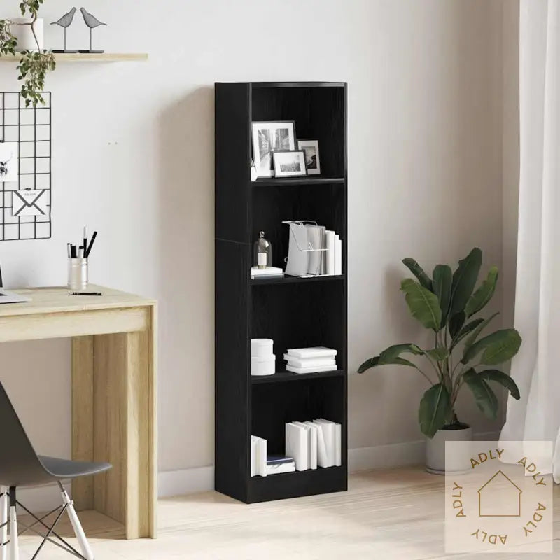 Denne bokhyllen i svart eik gir deg en smart løsning for å samle og organisere bøkene dine, samtidig som den tilfører et moderne preg til stuen eller kontoret. Bokhyllen kombinerer funksjonalitet med estetikk, noe som gjør den til et naturlig valg når du ser etter møbler til hjemmet.
