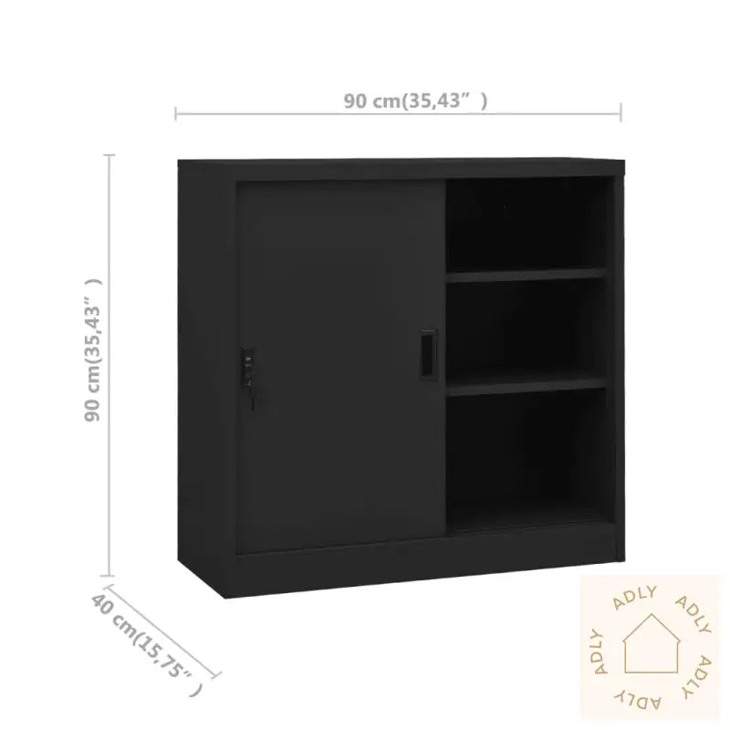 Farge: antrasittMateriale: stålMål: 90 x 40 x 90 cm (L x B x H)Med skyvedør for enkel og plassbesparende åpningAntall hyller: 2 – justerbare for fleksibel oppbevaringLastekapasitet per hylle: 30 kgTotal lastekapasitet: 60 kgInkluderer lås for sikker lagringMontering kreves: jaADVARSEL: For å forhindre at produktet velter, må medfølgende festemidler for vegg brukes.