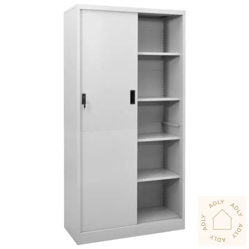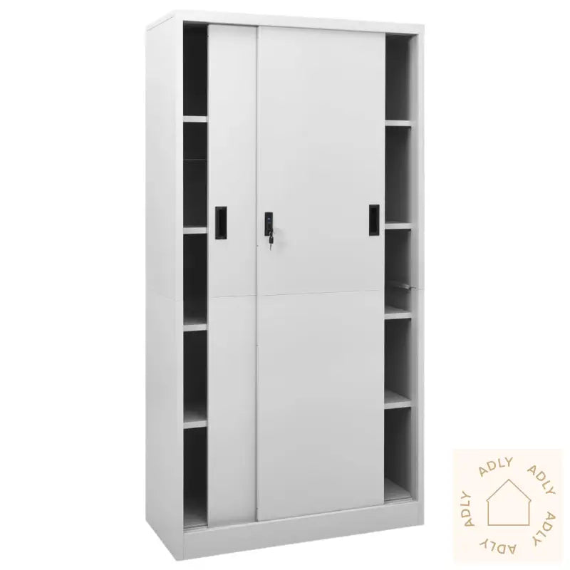 Med dette skapet kan du enkelt organisere og rydde bort alt rot på kontoret ditt! Oppbevaringsskapet gjør det lett å holde arbeidsplassen ryddig og oversiktlig, og bidrar til et mer effektivt kontormiljø. Skapet er laget av solid stål, som gir eksepsjonell slitestyrke og lang levetid – perfekt for deg som ønsker praktiske og holdbare møbler til hjemmet eller kontoret. Den lysegrå finishen passer til de fleste interiørstiler og matcher andre moderne møbler på en fin måte.