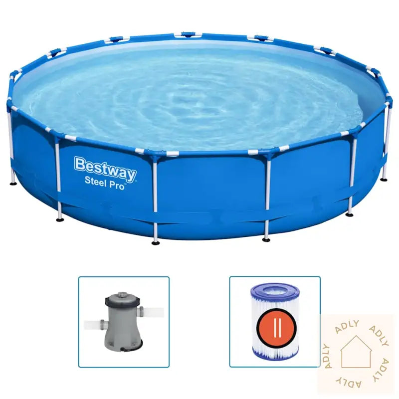 Gjør sommerdagene ekstra morsomme sammen med familie og venner med Steel Pro svømmebasseng fra Bestway! Den runde formen sørger for god plass til både lek og svømming, slik at alle får vært med og kost seg i vannet.