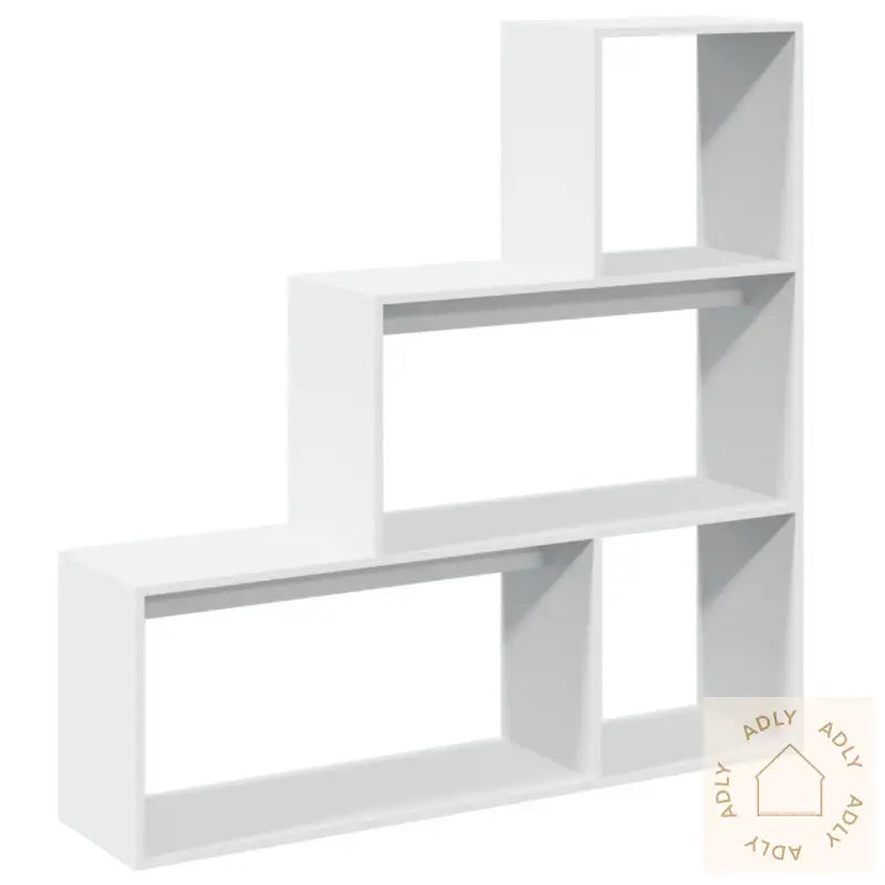 Skruer og plugger for montering til innvendig vegg følger ikke med. Vi anbefaler deg å finne egnet festemateriell som passer til akkurat dine vegger. Er du usikker, lønner det seg å spørre fagfolk. Les alltid instruksjonene nøye før montering.Farge: hvitMateriale: konstruert treSamlet mål: 123 x 29 x 123 cm (L x B x H)Total lastekapasitet: 50 kgVektkapasitet per etasje: 10 kgTrappelignende designKan også brukes som romdelerMontering kreves: jaLegal Documents: