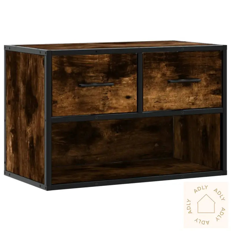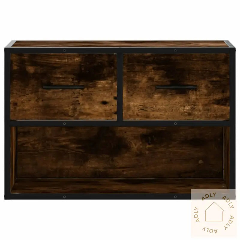 Skruer og plugger til veggmontering følger ikke med. Sørg for å bruke passende festeutstyr for din veggtype, enten det er betong, mur eller gips. Om du er usikker, anbefaler vi å kontakte en fagperson og alltid følge monteringsanvisningen trinn for trinn for et trygt og godt resultat.Farge: røkt eikMaterialer: konstruert tre og metallMål: 60 x 31 x 39,5 cm (L x B x H)Kan festes begge veier, enten opp eller ned, slik at den passer best mulig til akkurat ditt behov og romløsningMontering må gjøres selv