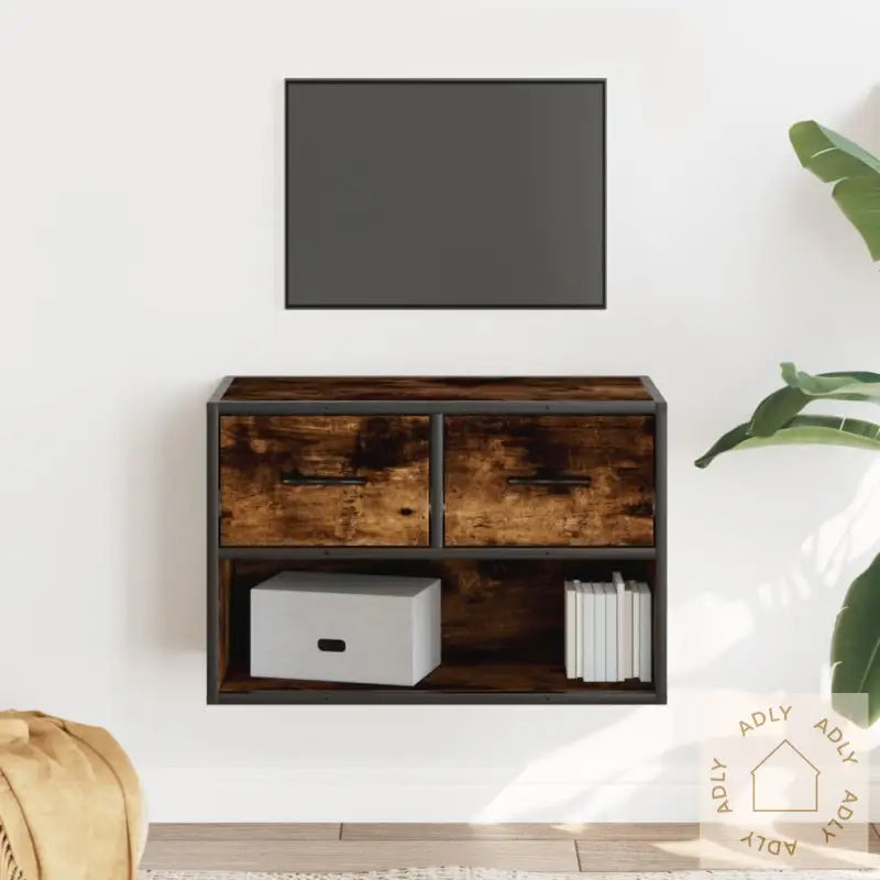 Med sin robuste metallramme får du en TV-benk som både gir rommet et stilig, industrielt preg og sikrer lang levetid. Metallrammen gjør møbelet stabilt og motstandsdyktig mot slitasje, samt beskytter mot korrosjon over tid – her investerer du i holdbarhet.Benken er laget av konstruert tre, noe som betyr at overflaten holder seg pen over lang tid og tåler daglig bruk. Dette materialet bidrar også til ekstra stabilitet for hele møblene, og gjør at du slipper å bekymre deg for fuktighet, vridning eller sprekker – et trygt valg blant møbler for enhver stil.Du får også rikelig med oppbevaringsplass! Det gir deg muligheten til å holde alt fra DVD-spillere og mottakere til disker og fjernkontroller ryddig samlet og lett tilgjengelig – perfekt hvis du liker å ha orden uten rot.Mediaskapet har et veggmontert design, så du kan enkelt montere det rett på veggen. Det gir en luftig følelse og frigjør verdifull gulvplass – spesielt smart for små rom eller dem som setter pris på fleksible møbler til hjemmet.Godt å vite: