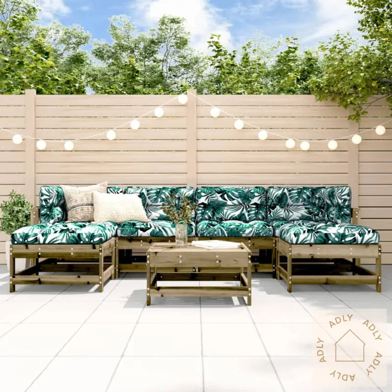 Impregnert treverk: Hele konstruksjonen består av solid, trykkimpregnert furu – et naturlig og slitesterkt treslag som er kjent for sitt utfordrende utseende med karakteristiske årringer og kvister. Impregneringen beskytter effektivt mot råte og vær, slik at du får ekstra holdbare møbler til hjemmet og utendørs.Komfortabel sitteopplevelse: Ryggen er utformet for optimal sittekomfort. Dette setter prikken over i-en for sofagruppen og sørger for at du kan lene deg godt tilbake og koble av.Modulært design: Dette settet er utrolig fleksibelt. Du kan enkelt flytte rundt på delene, kombinere med andre modulære hagemøbler fra vårt sortiment, og skape akkurat den konfigurasjonen som passer ditt uteområde. Et stilfullt og praktisk valg for alle som ønsker individuell tilpasning.Godt å vite: