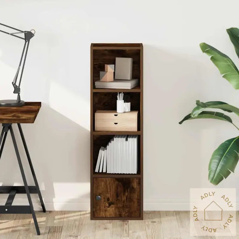 Stabilt og slitesterkt materiale: Bokhyllen er laget av konstruert tre, kjent for sin styrke og holdbarhet. Overflaten er glatt og enkel å rengjøre, samtidig som materialet er robust mot fukt, vridning og sprekker. Dette gir deg en hylle du kan stole på over tid – perfekt for aktive familier eller deg som ønsker noe som varer.Rikelig med lagringsplass: Med flere praktiske hyller og et skap med dør har du god plass til bøker, mapper, magasiner og dokumenter. Du slipper rot, og samlingen din får en pen og oversiktlig plassering.Fleksibel dørinstallasjon: Sett døren akkurat der det passer deg best, enten på høyre eller venstre side. En fleksibel funksjon som gjør det enklere å tilpasse bokhyllen til ditt rom og dine vaner.Ulike bruksområder: Denne bokhyllen er ikke bare til for bøker! Den gjør seg like godt som et utstillingsmøbel for bilder, fine pyntegjenstander, premier eller grønne planter. Her får du et allsidig møbel som gir hjemmet ditt personlighet.Enkelt vedlikehold: Den glatte overflaten gjør hyllen enkel å holde ren. Tørk over med en fuktig klut – så holder den seg pen og fresh lenge uten mye innsats.Advarsel: