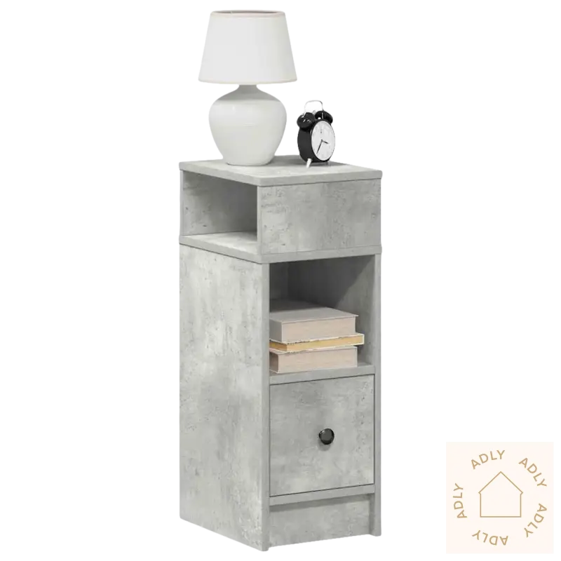 For å forebygge at skapet velter, skal festemekanismen som følger med benyttes.Farge: betonggråMateriale: konstruert treSamlet mål (hver): 25 x 31 x 66 cm (B x D x H)Mål skuff: 21 x 31 x 19,5 cm (B x D x H)Antall skuffer: 1Total vektkapasitet: 60 kgVektkapasitet per skuff: 5 kgMontering kreves: jaLeveringen inkluderer:2 x nattbord