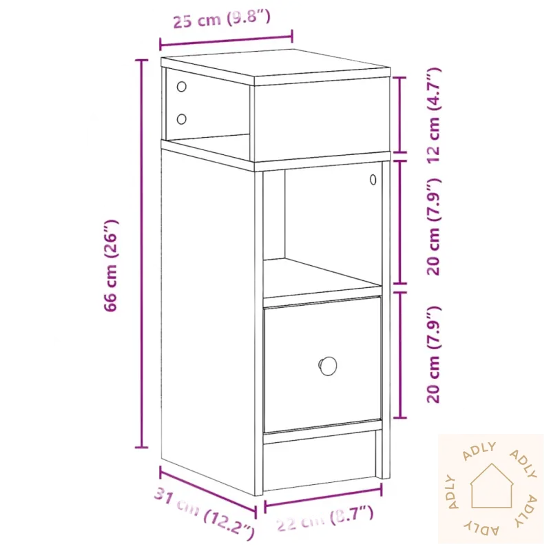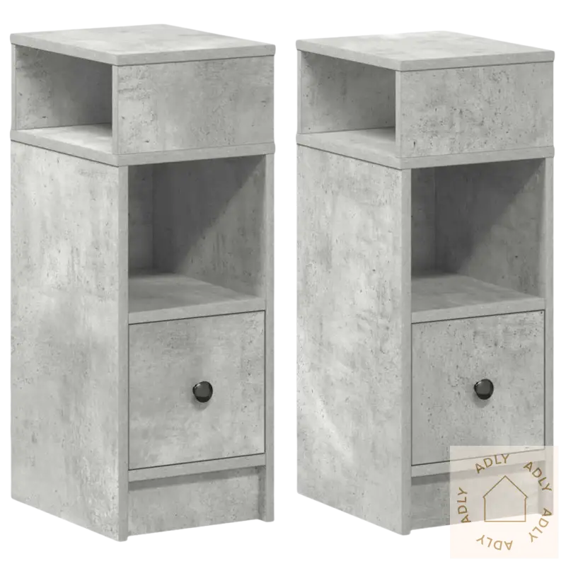 Stabilt og slitesterkt materiale: Nattbordene er laget av konstruert tre, noe som gjør dem solide og pålitelige for daglig bruk. Den jevne overflaten tåler både fuktighet og slitasje, og holder seg pen over tid – et smart valg for deg som ønsker at møbler i hjemmet ditt skal vare lenge.Rikelig med oppbevaring: Du får god plass til oppbevaring med én romslig skuff samt to åpne hyller der du kan holde bøker, magasiner eller personlige ting organisert. Dette bidrar ikke bare til orden, men gir rask tilgang til det du trenger ved sengen.Praktisk bruk: Høyden er nøye tilpasset slik at du enkelt rekker nattbordet fra sengekanten. Skuffen åpnes og lukkes smidig takket være en hendig knott, så du slipper unødvendig styr – praktisk når man ligger i senga.Enkelt å vedlikeholde: Med en glatt og robust overflate er det fort gjort å holde nattbordene rene. Bare tørk over med en fuktig klut, så ser det fresht ut uten stort vedlikehold.Advarsel: