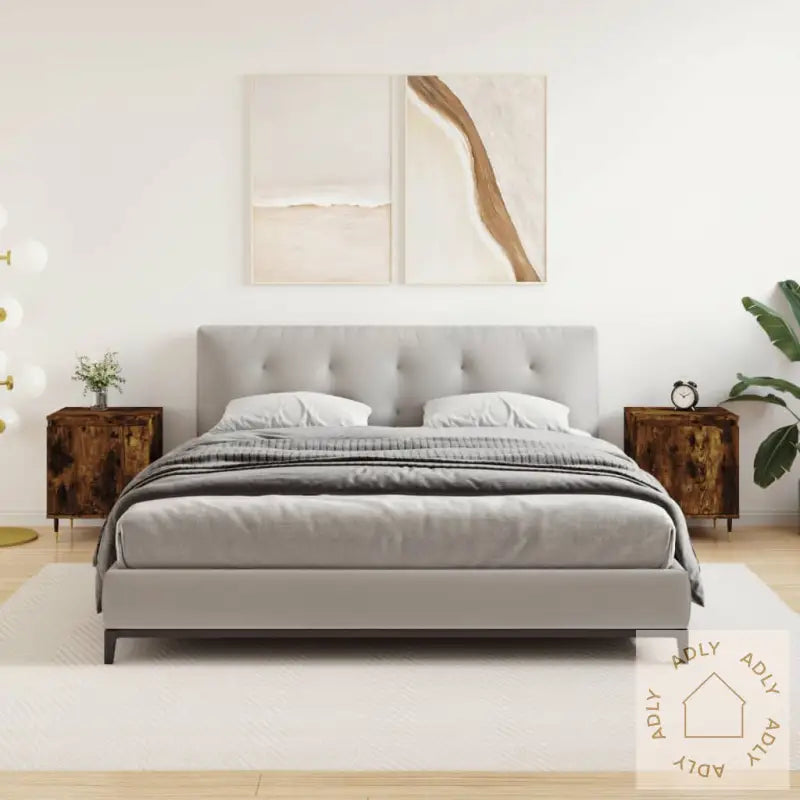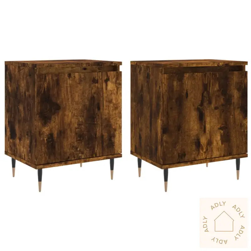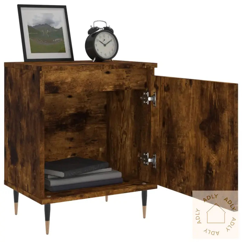 For sikker bruk og for å unngå at møbelet velter, skal det alltid festes med den medfølgende festeanordningen.Farge: røkt eik – en moderne og varm farge som passer sammen med mange andre møbler til hjemmet eller også inspirerer hvis du ser etter nye hagemøbler eller utendørsmøbler.Materialer: slitesterk kombinasjon av konstruert tre og jern for ekstra styrke og stabilitet.Mål (hver): 40 x 30 x 50 cm (B x D x H) – praktiske mål som passer også i mindre rom.Enkel montering kreves.Leveransen inkluderer:2 x nattbord – perfekt om du vil matche begge sider av sengen eller har behov for ekstra oppbevaring i forskjellige rom.Legal Documents: