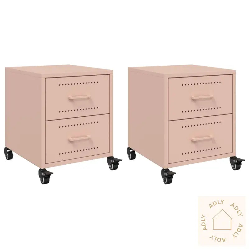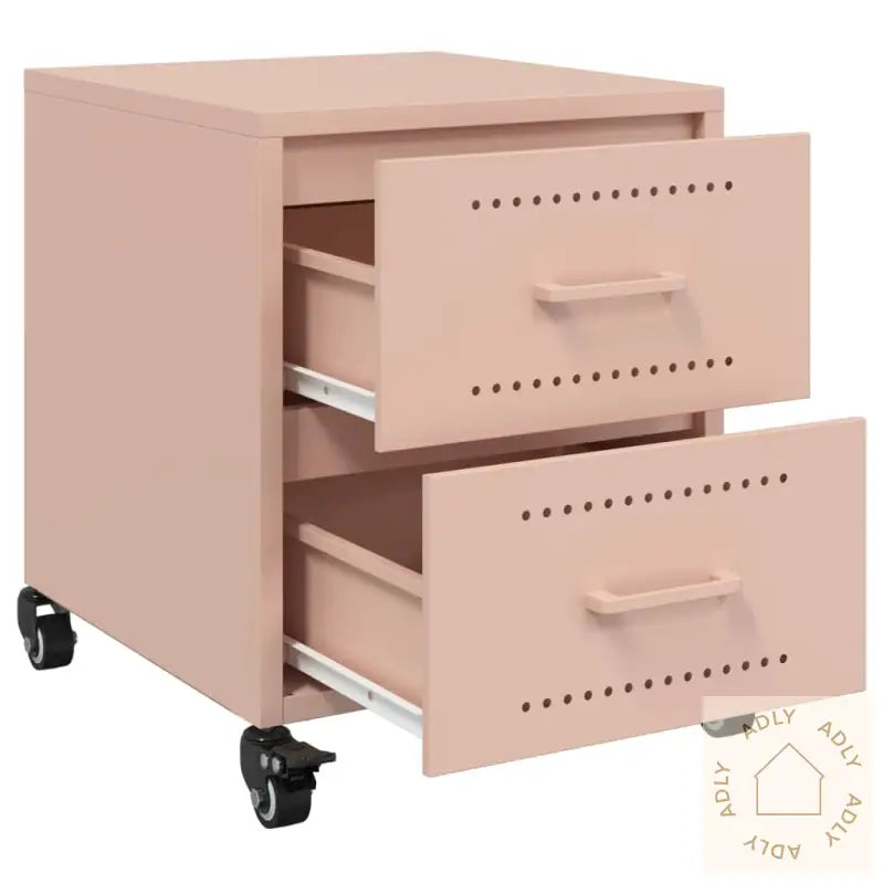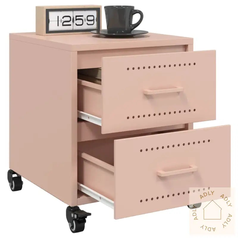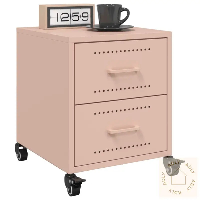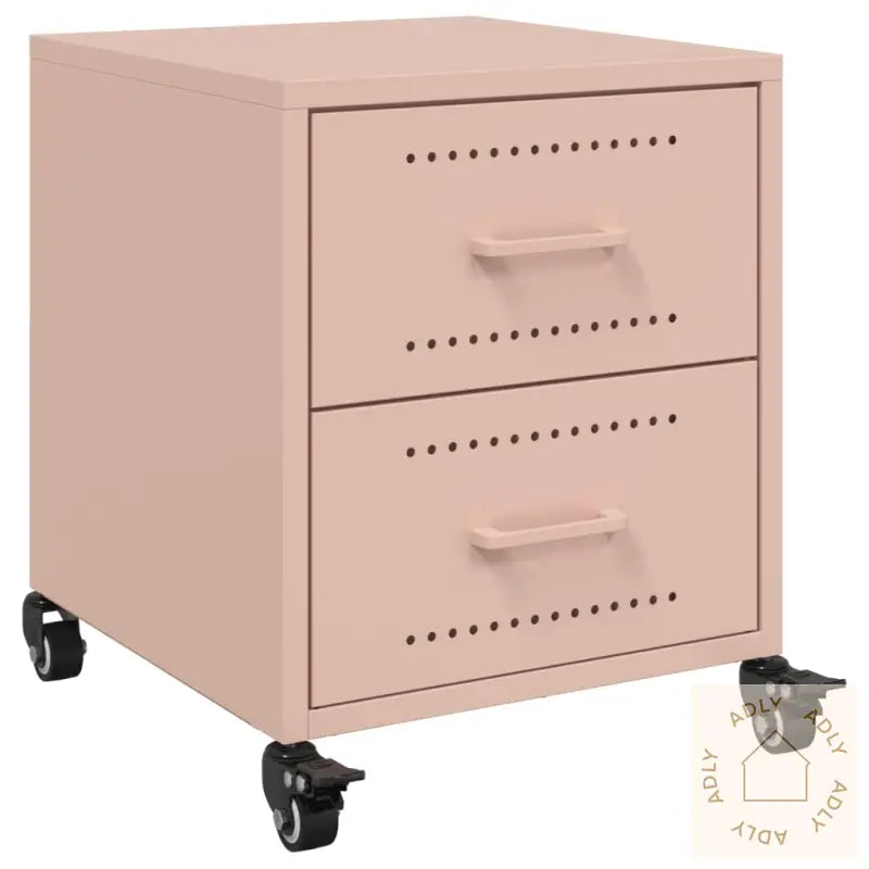 Stabilt materiale: Rammen på nattbordet er laget av kaldvalset stål, kjent for sin ekstra slitestyrke og elegante finish. Kaldvalset stål har en jevn overflate, styrke og holdbarhet, noe som gjør det til et smart valg for møbler til hjemmet som skal vare lenge. Samtidig ser det veldig elegant ut og gir en industriell touch til soverommet.Rikelig med lagringsplass: Skapet har god plass til oppbevaring, slik at du lett kan holde bøker, magasiner, fjernkontroller eller andre småting pent organisert og rett ved sengen. Perfekt for å skape et ryddig inntrykk og ha det du trenger innen rekkevidde.Enkelt å vedlikeholde: Overflaten på dette nattbordet tåler daglig bruk, og det er superenkelt å rengjøre med en fuktig klut. Fordi det krever minimalt med vedlikehold, får du mer tid til å slappe av i senga.Lett å flytte: Med 4 smidige hjul kan endebordet enkelt flyttes rundt etter behov, enten du skal ommøblere eller bare bytte plass. Når det står der du vil ha det, sørger hjulene for at bordet holder seg stabilt.Praktisk håndtak: Det stilrene håndtaket gjør det lett å åpne og lukke skapet, og tilfører også et dekorativt element som fremhever designet.Farge: rosaMateriale: kaldvalset stålMål: 36 x 39 x 43,5 cm (L x B x H)Med 2 skufferMontering kreves: jaLeveransen inneholder:2 x nattbord