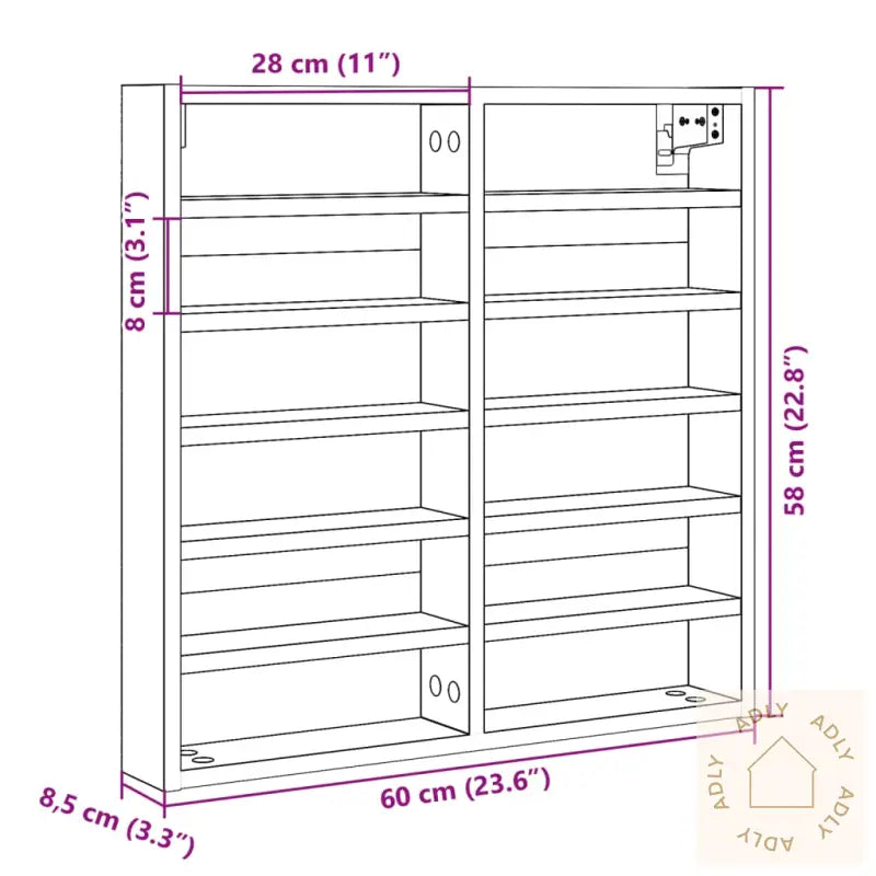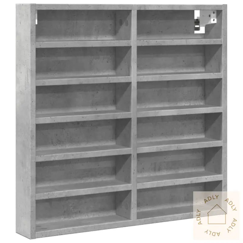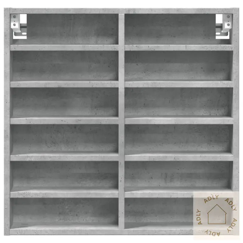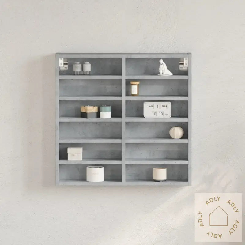 Skruer og plugger for veggmontering følger ikke med. For best resultat bør du velge plugger og skruer som passer din veggtype. Er du usikker, anbefaler vi at du spør en profesjonell. Følg alltid monteringsanvisningen nøye for et sikkert resultat.Farge: betonggrå, som gir et moderne uttrykk og matcher mange ulike stiler.Materiale: konstruert tre for høy holdbarhet og enkel pleie.Mål: 60 x 8,5 x 58 cm (B x D x H) – tar lite plass og gir mye oppbevaringsmulighet.Oppbevaringsplass: 12 hyller gir deg fleksibilitet til å sortere og oppbevare alt fra bøker til dekorative gjenstander.Maksimal lastekapasitet (totalt): 50 kg – perfekt for både tyngre og lettere ting. Maksimal lastekapasitet per hylle: 5 kg.Montering kreves: ja, men med klare instruksjoner slik at du lett kommer i gang.