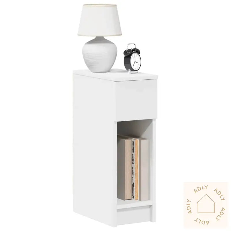 Stabilt og slitesterkt materiale: Konstruert tre gir en robust og pålitelig konstruksjon. Den glatte overflaten tåler fuktighet og holder seg pen over tid uten å vri seg eller sprekke, noe som gjør dette til et varig møbel for soverommet.Rikelig med oppbevaring: Skapet har én romslig skuff og ett åpent lagringsrom hvor du lett kan organisere alt fra bøker, magasiner og persolige eiendeler. Du holder soverommet ryddig og får plass til det viktigste akkurat der du trenger det.Praktisk bruk: Bordets høyde er optimal for rask tilgang fra sengen, i tillegg åpnes skuffen enkelt med det praktiske håndtaket – perfekt når du har behov for ekstra komfort og bekvemmelighet i hverdagen.Enkelt å vedlikeholde: Den glatte overflaten gjør at du raskt tørker bort støv og småskitt med en fuktig klut. Det krever minimalt vedlikehold så du kan bruke tiden på andre ting hjemme eller ute – perfekt sammen med dine utendørsmøbler og andre møbler.Advarsel: