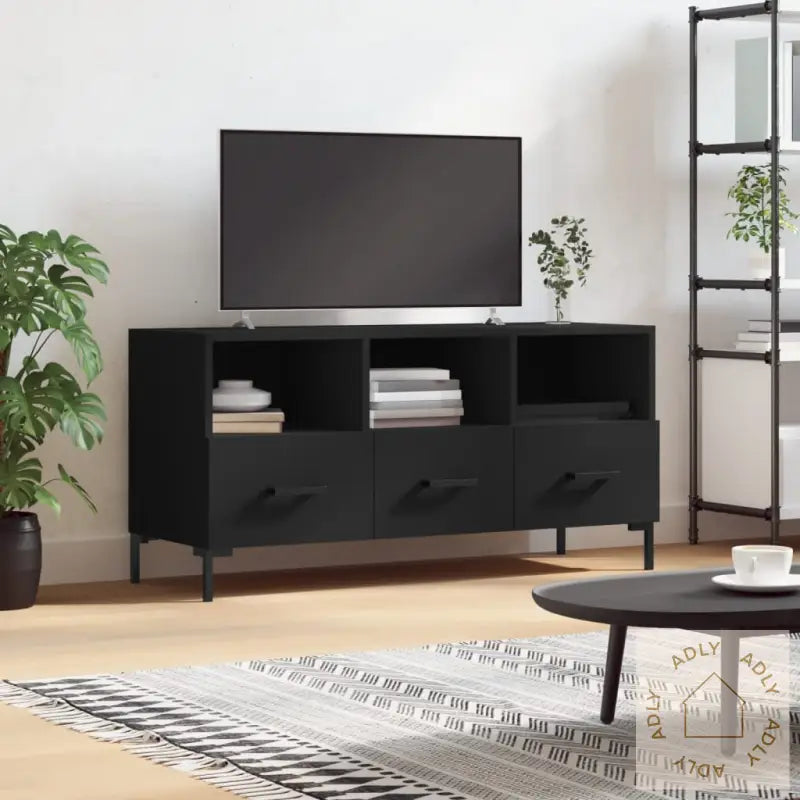 For sikker bruk anbefales det å feste møbelet til veggen med de medfølgende beslagene for å forhindre at TV-benken velter.Farge: svartMaterialer: konstruert tre, jernMål: 102 x 36 x 50 cm (B x D x H)Montering kreves: jaLegal Documents: