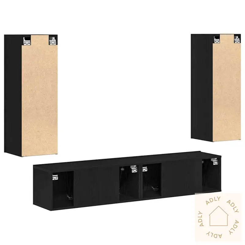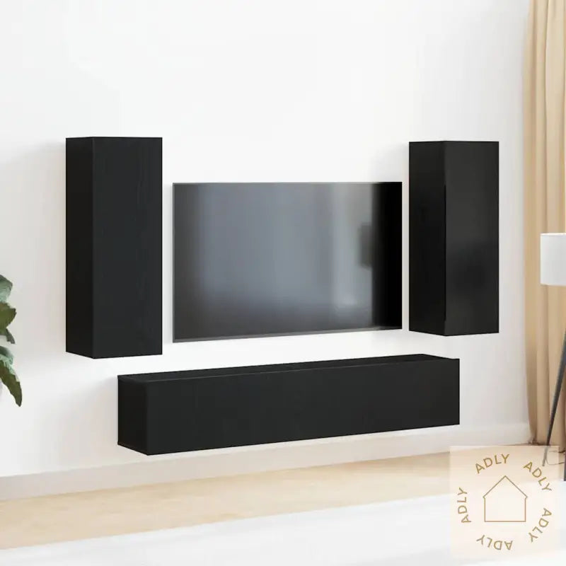 Antall gjenstander: 4Farge: SvartForm: Rektangulær, moderne design som passer de fleste hjemMateriale: MDF – slitesterkt og enkelt å vedlikeholdeFinish: Matt overflate for et elegant uttrykkInnendørs/Utvendig: Kun for innendørs bruk – perfekt sammen med andre moderne møblerDeksel inkludert: NeiRom: Spesielt egnet for stue, gir oppussingen av stuen et løftKapacitet: Rikelig plass til oppbevaring av elektroniske enheter, fjernkontroller og annet tilbehørMaksimal vekt: Total kapasitet på 50 kg gir trygge lagringsmuligheter for TV-bokser eller spillkonsollerMontering inkludert: Vegg- og takfester følger med, men spesifikke skruer eller plugs følger ikke med slik at du kan tilpasse etter veggtypen hjemme hos degSvinger: Nei – fast montering for økt sikkerhet og stabilitetMerke: vidaXLLevering inneholder: Fire deler – én sentral enhet og to vertikale enheter gjør at du enkelt kan organisere oppbevaringen i høyden og spare plassMontering nødvendig: Ja – for best resultat anbefales det at to personer samarbeider under monteringAnbefalt antall personer for montering: 2SKU: .EAN: .Med dette praktiske og stilrene TV-skap settet fra vidaXL får du både funksjonell lagring og et møbel som gir stuen din et moderne uttrykk – perfekt for deg som ønsker å oppgradere hjemmet ditt med nye møbler til hjemmet. Skap et ryddig, innbydende oppholdsrom der du alltid har det du trenger lett tilgjengelig.
