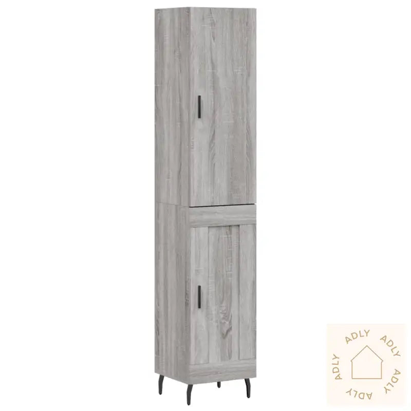 Skruer og plugger til veggmontering følger ikke med. Husk å velge festemidler som passer veggtypen i ditt hjem. Ta gjerne kontakt med en profesjonell for veiledning, og følg monteringsanvisningen nøye for best resultat.Farge: grå sonomaMateriale: konstruert tre, metallStørrelse: 34,5 x 34 x 90 cm (B x D x H)Montering kreves: jaPakken inneholder:1 x skjenk1 x topp til highboardJuridisk informasjon: