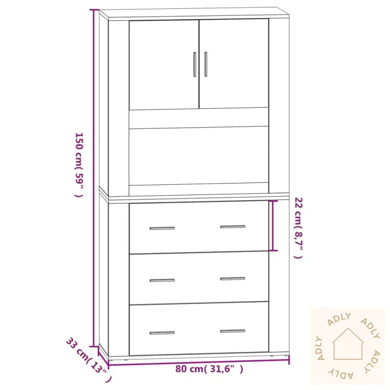 Slitesterkt materiale: Det konstruerte treverket er av eksepsjonell kvalitet med glatt overflate. Materialet er robust, stabilt og motstandsdyktig mot fuktighet – egenskaper som gjør dette highboardet til et pålitelig valg blant moderne møbler og hagemøbler.Rikelig med lagringsplass: Skjenken byr på rikelig oppbevaringsplass som hjelper deg å holde orden på hverdagsting og tilbehør. Alt har sin faste plass og er enkelt tilgjengelig, noe som gir deg et ryddig og oversiktlig hjem.Veggmontert funksjon: Oppbevaringsskapet kan festes på veggen over skjenken for å danne et highboard. Den smarte løsningen lar deg utnytte plassen maksimalt, frigjør gulvareal og holder rommet luftig og organisert – ideelt når du vil ha mer plass til dine utendørsmøbler eller andre møbler.Godt å vite: