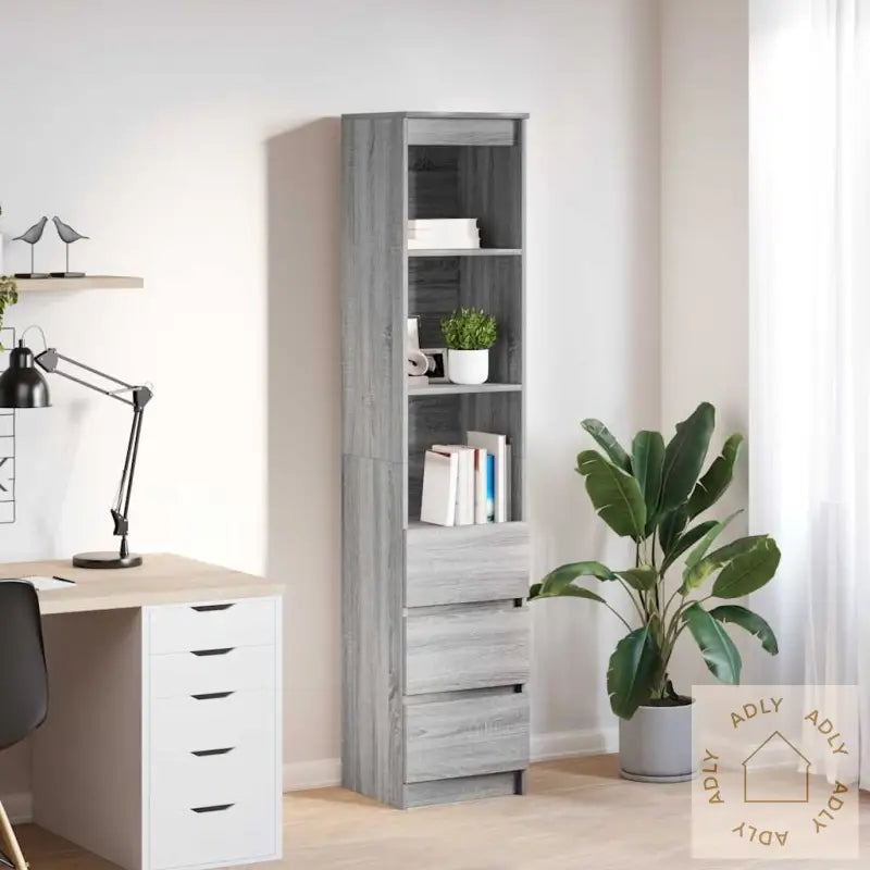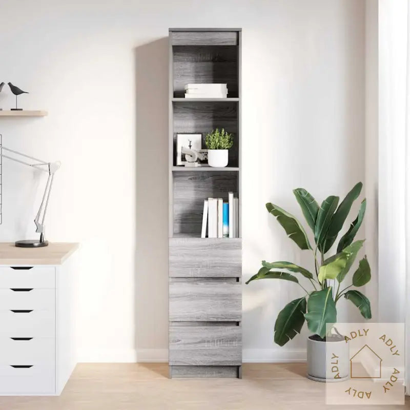 Skruer og plugger for veggmontering følger ikke med. Velg skruer og plugger som passer til nettopp dine veggtyper og hjemmemiljø. Er du usikker, kan det være lurt å spørre en profesjonell om råd. Husk å følge monteringsanvisningen nøye ved montering.Farge: grå sonomaMateriale: konstruert treSamlet mål: 37,5 x 35 x 180 cm (B x D x H)Skuffedimensjoner: 37 x 28,5 x 20 cm (B x D x H)Antall skuffer: 2Antall hyller: 3Maks. vektkapasitet: 60 kgMaks. vektkapasitet på hylle: 20 kgMaks. vektkapasitet på skuffen: 5 kgMontering kreves: jaDette fleksible og minimalistiske skapet er et perfekt supplement til ditt behov for møbler til hjemmet, enten du leter etter gode løsninger innen bokhyller og stående hyller eller bare ønsker plassbesparende oppbevaring – alt uten å gå på kompromiss med stilen.