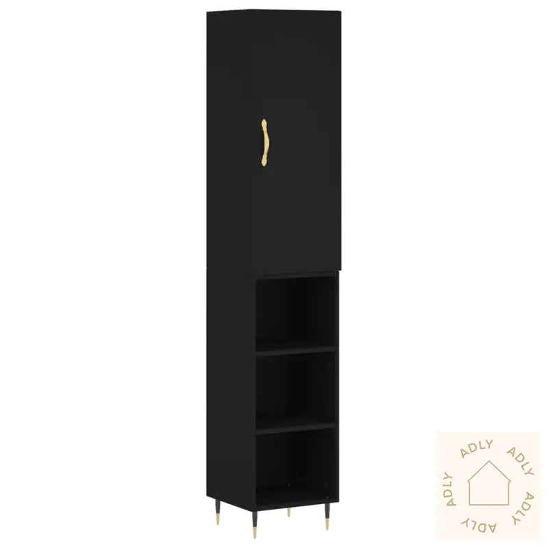 Slitesterkt materiale: Skapet er laget av konstruert treverk av høy kvalitet, som har en jevn og holdbar overflate. Dette gir ikke bare lang levetid, men også god stabilitet og motstand mot fuktighet – ideelt for norske hjem.God lagringsplass: Highboardet har generøse lagringsmuligheter, slik at du enkelt kan holde orden på bøker, pyntegjenstander eller andre nødvendigheter. Alltid enkelt å ha det du trenger rett i nærheten.Praktiske dører: Oppbevar småting ute av syne og hold rommet ryddig og innbydende ved å skjule rot bak skapets dører.Metallføtter: De stilrene metallføttene gir et moderne preg til interiøret og sørger for ekstra stabilitet, samtidig som de fremhever designet.