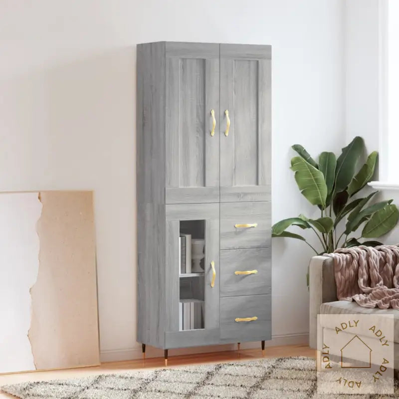 - Slitesterkt materiale: Det konstruerte treverket har en førsteklasses, glatt overflate og er kjent for sin styrke, stabilitet og evne til å motstå fuktighet. Dette betyr at highboardet vil holde seg pent lenge, selv ved daglig bruk.