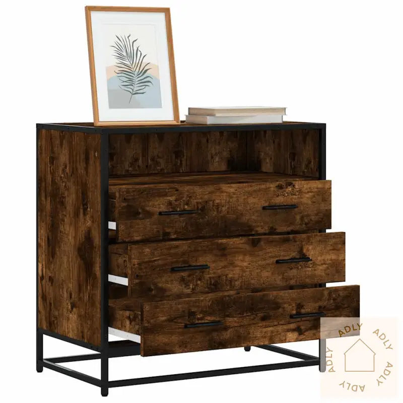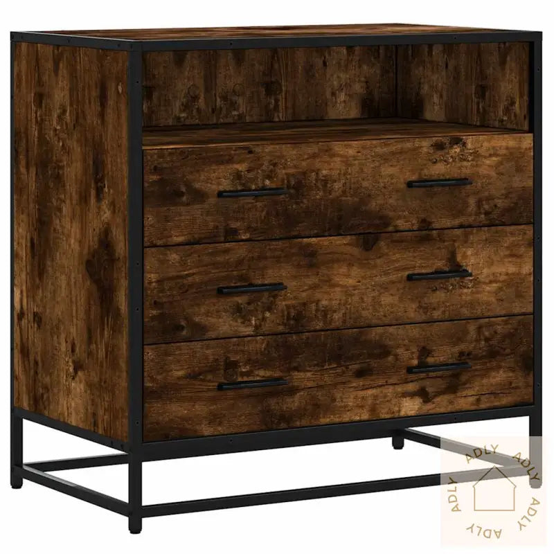 Stabil og langvarig ramme: Kommodens robuste metallramme gir et trendy industrielt uttrykk og sikrer samtidig imponerende holdbarhet, stabilitet og beskyttelse mot korrosjon. Dette gjør møbelet solid og velegnet for daglig bruk i hjemmet.Holdbare materialer: Skroget er laget av konstruert tre, som gir en jevn, fin overflate. Materialet er kjent for å være slitesterkt og motstandsdyktig mot fukt, vridning og sprekker, så du får en investering i møbler som varer lenge og holder seg pent over tid.God lagringsplass: Med tre romslige skuffer får du enkel oppbevaring og oversikt over alt fra klær til småting og dokumenter. Perfekt til deg som vil holde hjemmet organisert og pent – uansett om det er på soverommet, gangen eller stuen.Solid topp: Den stødig konstruksjonen på toppen gir masse plass til favorittdekor som potteplanter, innrammede bilder eller personlige detaljer som fremhever din stil. Kommoden fungerer også fint sammen med andre møbler enten du innreder nytt eller kompletterer eksisterende møbler til hjemmet.Enkel rengjøring: Overflatene er lette å holde pene – det er bare å tørke over med en fuktig klut ved behov.Advarsel: