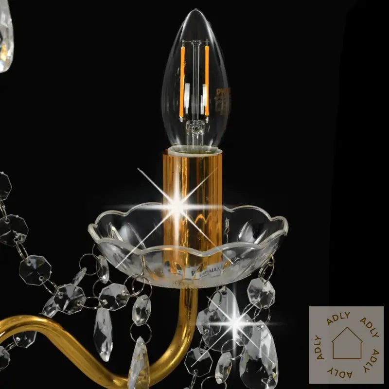 Med sitt ekstravagante og stilige design vil denne lysekronen med glitrende perledråper virkelig løfte innredningen din, og fungere som et ekte blikkfang blant dine møbler til hjemmet. Enten du har klassiske eller moderne hagemøbler, passer denne lampen perfekt inn i stue, spisestue eller over en bokhylle – den gir alltid noe spesielt til rommet.