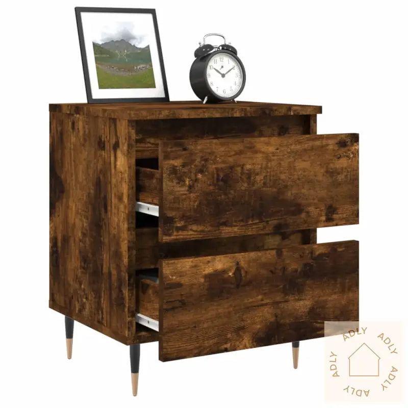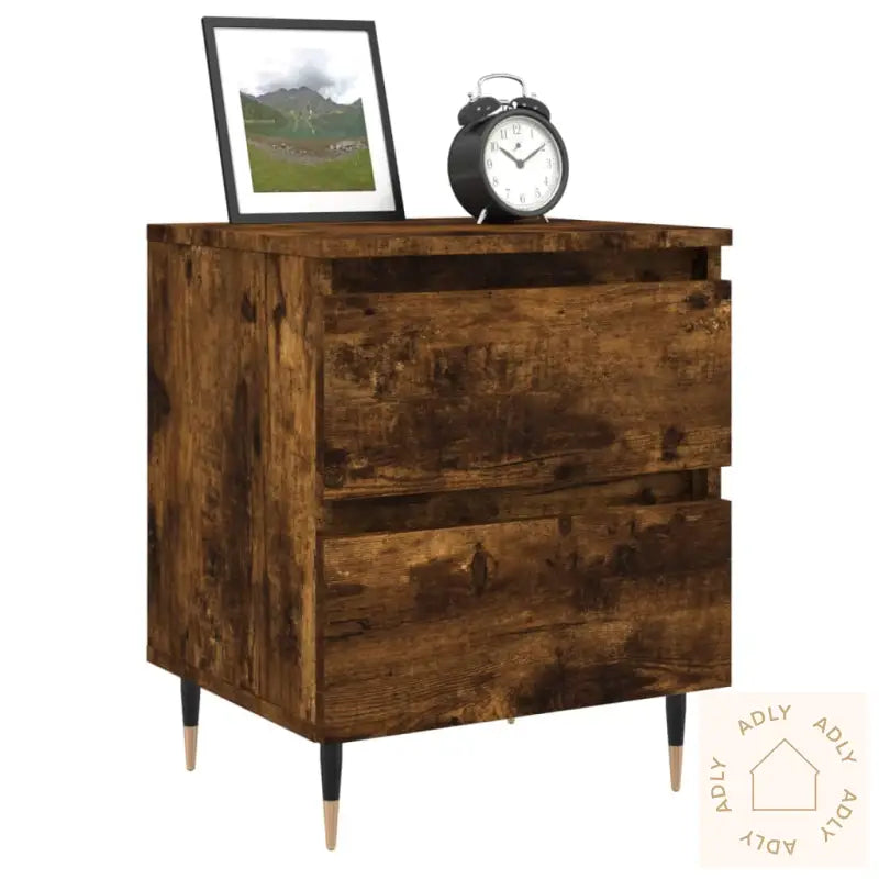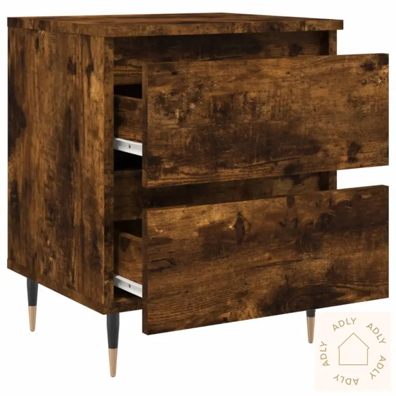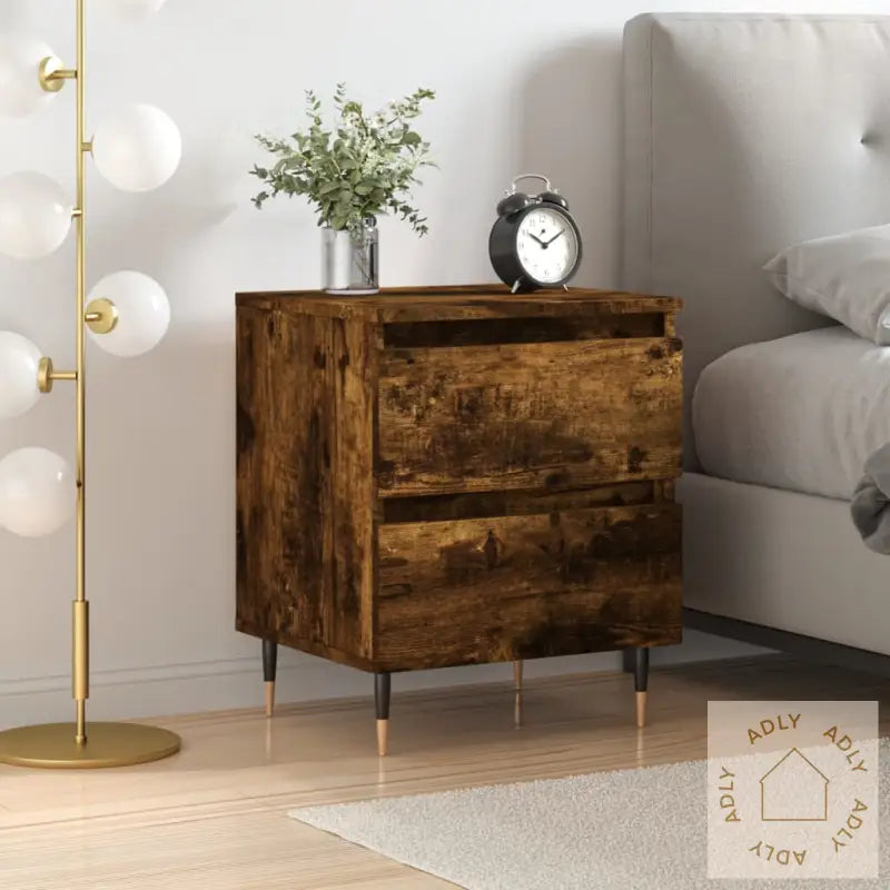 Slitesterkt materiale: Nattbordet er laget av konstruert tre av høy kvalitet som gir en jevn og stilig overflate. Dette materialet er kjent for solid styrke, god stabilitet og gir samtidig motstand mot fukt, noe som sikrer at møbelet holder seg pent i lang tid. Det er enkelt å holde rent – bare tørk over med en fuktig klut, så fremstår det alltid fresht og innbydende.Rikelig med lagringsplass: Med to praktiske skuffer får du lett plass til bøker, magasiner, fjernkontroller og småting du ønsker å ha lett tilgjengelig ved sengen. Skuffene gjør det enkelt å holde orden i tingene dine – perfekt for en ryddig og trivelig atmosfære.Solid og funksjonell bordplate: Toppen på nattbordet gir deg en stabil flate hvor du trygt kan sette fra deg alt fra bok, vekkerklokke og mobil, til dekorative elementer som potteplanter og bilder.Advarsel: