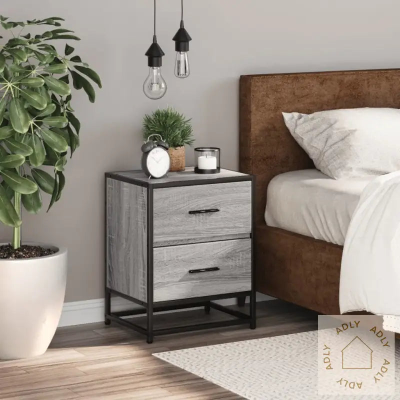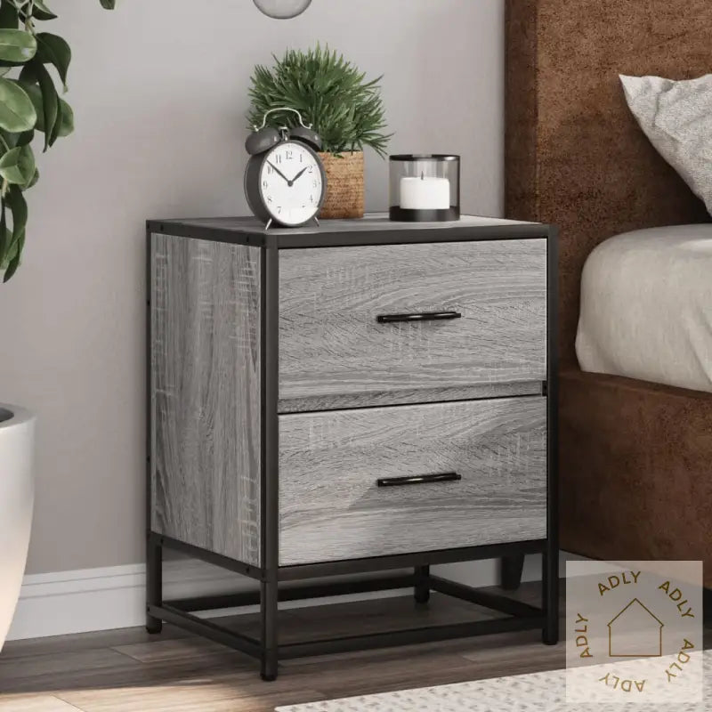 Holdbart materiale: Dette nattbordet er laget av konstruert tre og stål av høy kvalitet. Materialet gir ikke bare en glatt og elegant overflate, men sørger også for styrke, stabilitet og lang levetid. Det tåler daglig bruk og har god motstand mot fuktighet, noe som gjør det til et trygt valg blant funksjonelle møbler.Rikelig med oppbevaringsplass: Med to romslige skuffer kan du enkelt oppbevare og organisere alt fra bøker til småting, slik at du alltid har det viktigste lett tilgjengelig – samme om du bruker det som nattbord eller sidebord sammen med dine bokhyller og stående hyller.Enkelt å vedlikeholde: Takket være den jevne overflaten er nattbordet enkelt å holde rent. Du trenger bare en lett fuktet klut for å tørke vekk støv eller smuss, noe som gjør vedlikeholdet raskt og greit.Robust bordplate: Den solide bordplaten gir deg mulighet til å sette dekorative elementer, familiebilder eller en liten grønn plante rett ved siden av sengen eller sofaen. Perfekt for å skape en koselig atmosfære hjemme.Advarsel: