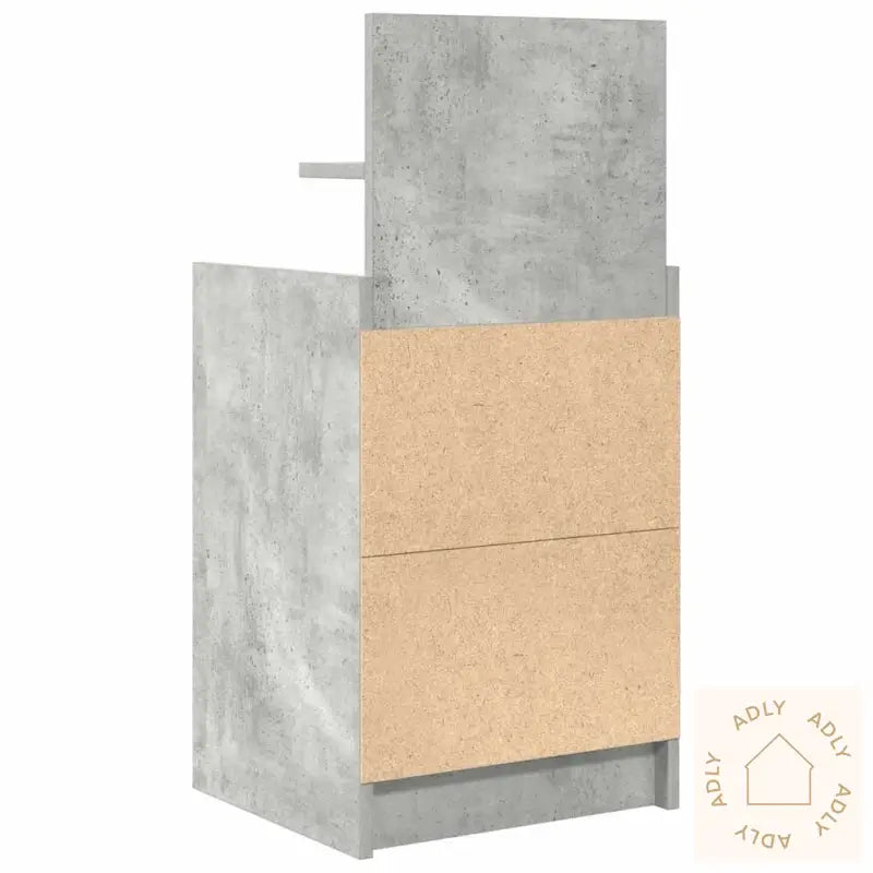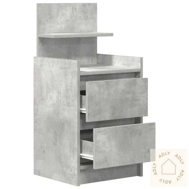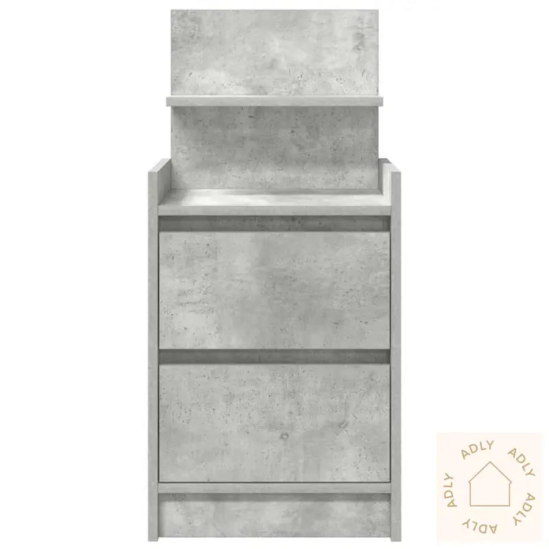 Farge: betonggråMateriale: konstruert treSamlet mål: 38 x 34 x 80 cm (B x D x H)Antall skuffer: 2Total vektkapasitet: 60 kgVektkapasitet per skuff: 5 kgMontering kreves: ja