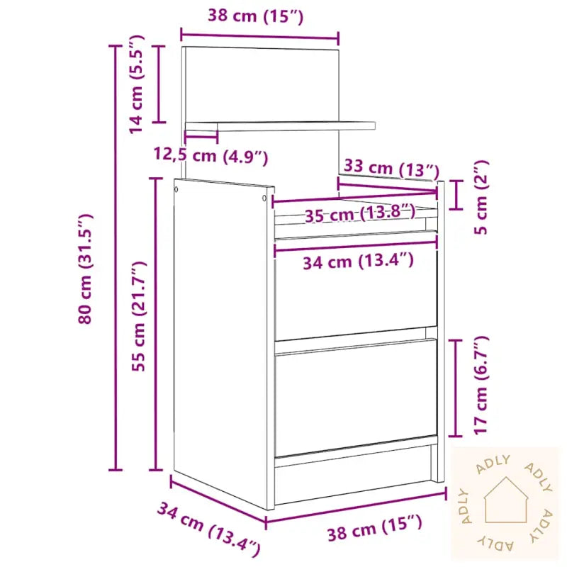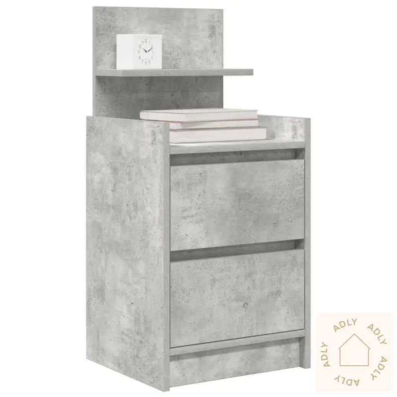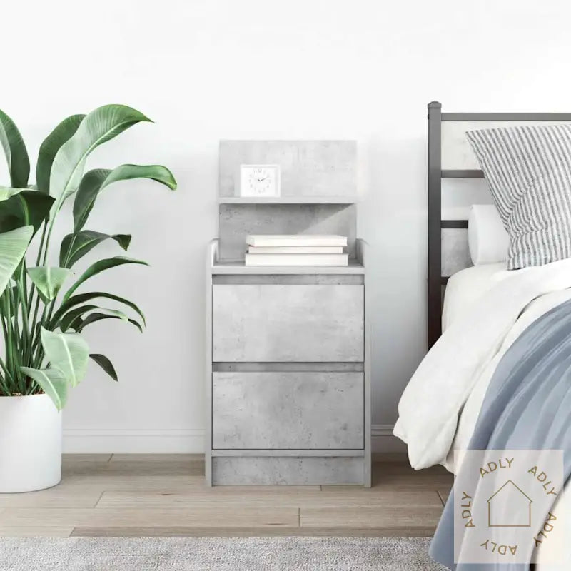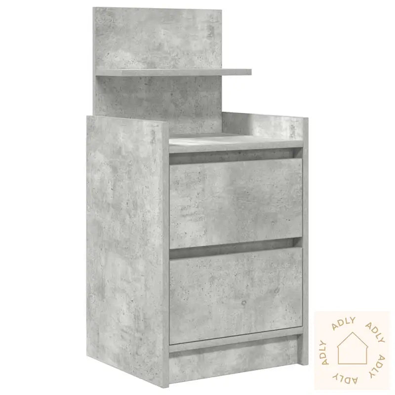 Stabilt og slitesterkt materiale: Konstruert tre gir deg et robust og stabilt nattbord med en jevn overflate som tåler både daglig bruk og fuktighet uten å vri seg eller sprekke. Dette gjør det til et smart valg når du leter etter slitesterke møbler som passer inn i ulike stiler og miljøer.Rikelig med lagringsplass: Nattbordet har to romslige skuffer som gjør det enkelt å oppbevare magasiner, bøker, briller eller annet nødvendig for en god natts søvn – alt samlet og lett tilgjengelig på ett sted.Solid topp: Den solide bordplaten gir deg masse plass til å plassere hverdagslige ting som en bordlampe, vekkerklokke, potteplanter, eller dekorasjoner – du får rikelig rom til å style soverommet akkurat slik du ønsker.Enkel å vedlikeholde: Med en glatt og motstandsdyktig overflate krever dette nattbordet minimalt vedlikehold. Det holder seg flott lenge, og du rengjør det rett og slett med en fuktig klut for et alltid rent uttrykk.Dette nattbordet er allsidig, og passer perfekt sammen med andre møbler eller hagemøbler dersom du vil skape en helhetlig stil hjemme. Utnytt lagringsplassen og få system på alt annet nødvendig du trenger ved sengen!