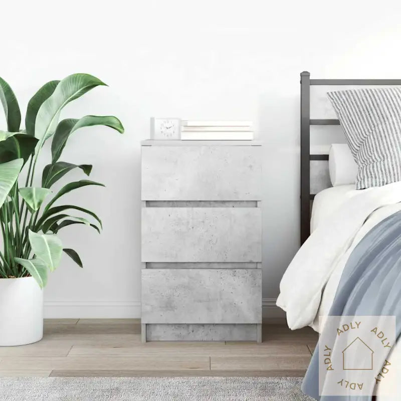 Farge: betonggråMateriale: konstruert treTotalmål: 39 x 35 x 65 cm (B x D x H)Antall skuffer: 2Total vektkapasitet: 60 kgVektkapasitet per skuff: 5 kgMontering kreves: jaOppgrader hjemmet ditt med dette moderne nattbordet og få både praktisk oppbevaring og stilrent design til soverommet. Passer perfekt sammen med andre moderne møbler, og er et smart valg både alene og sammen med resten av våre populære møbler til hjemmet.