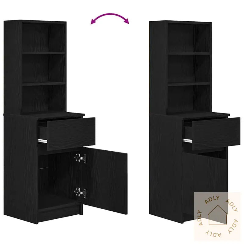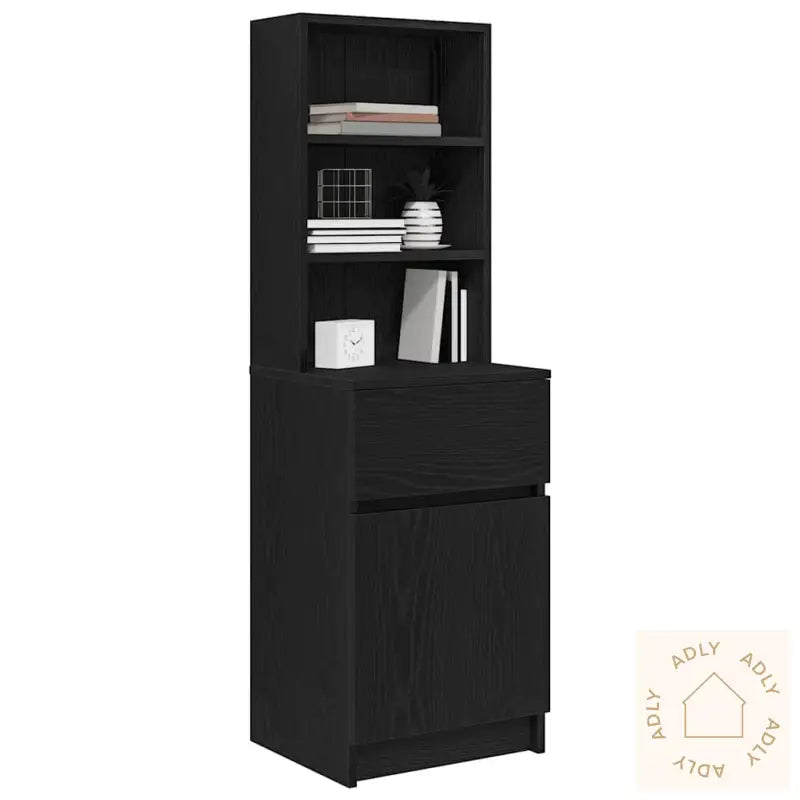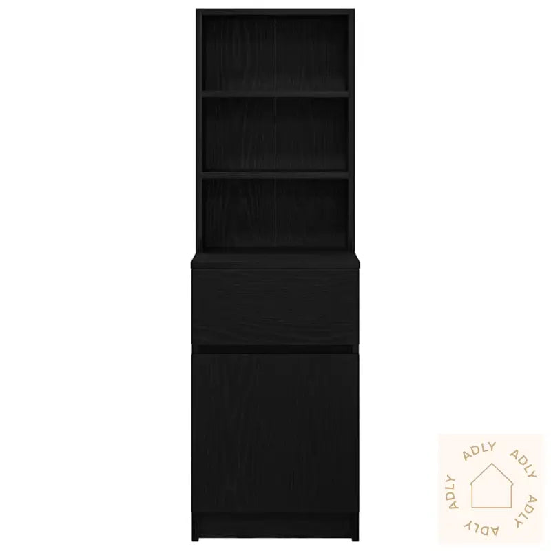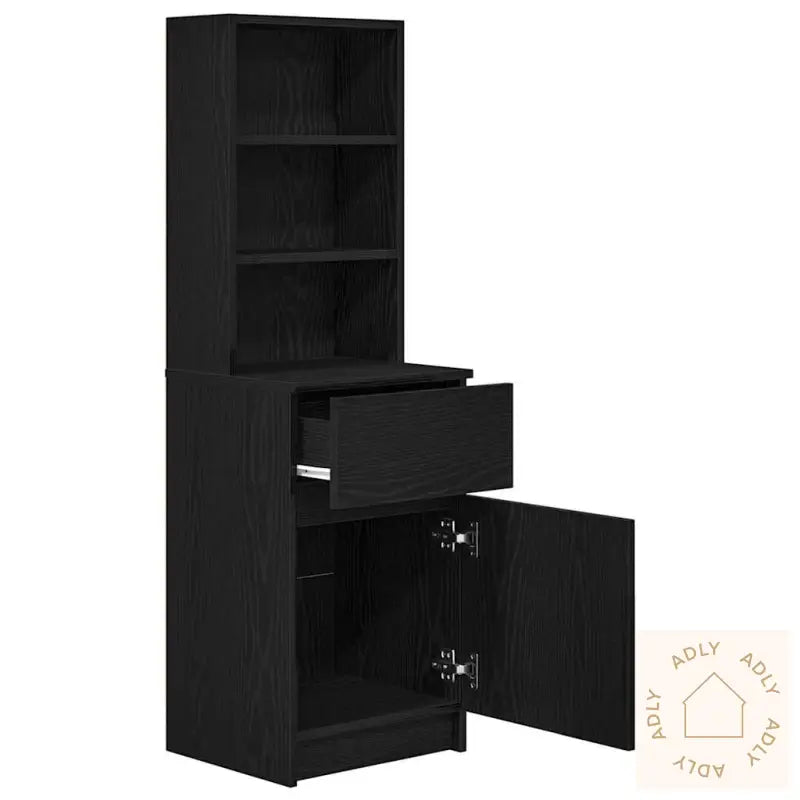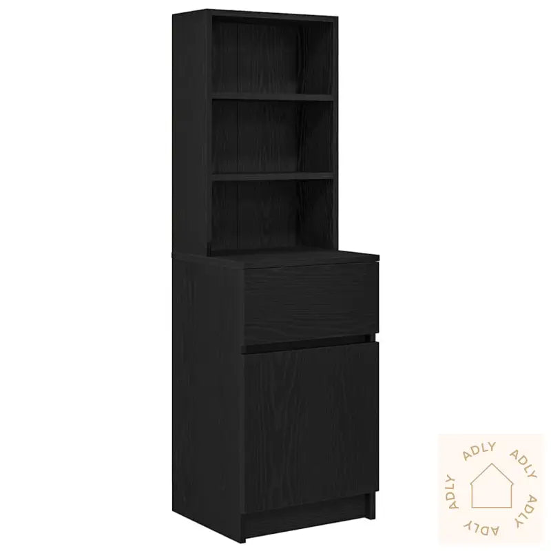 For å forhindre at produktet velter, må det sikres med den medfølgende festeanordningen.Farge: svartMateriale: konstruert treMål: 39 x 35 x 125 cm (B x D x H)Med 2 åpne hyller og 1 skuffTotal vektkapasitet: 60 kgVektkapasitet på skuff: 5 kgMontering kreves: ja