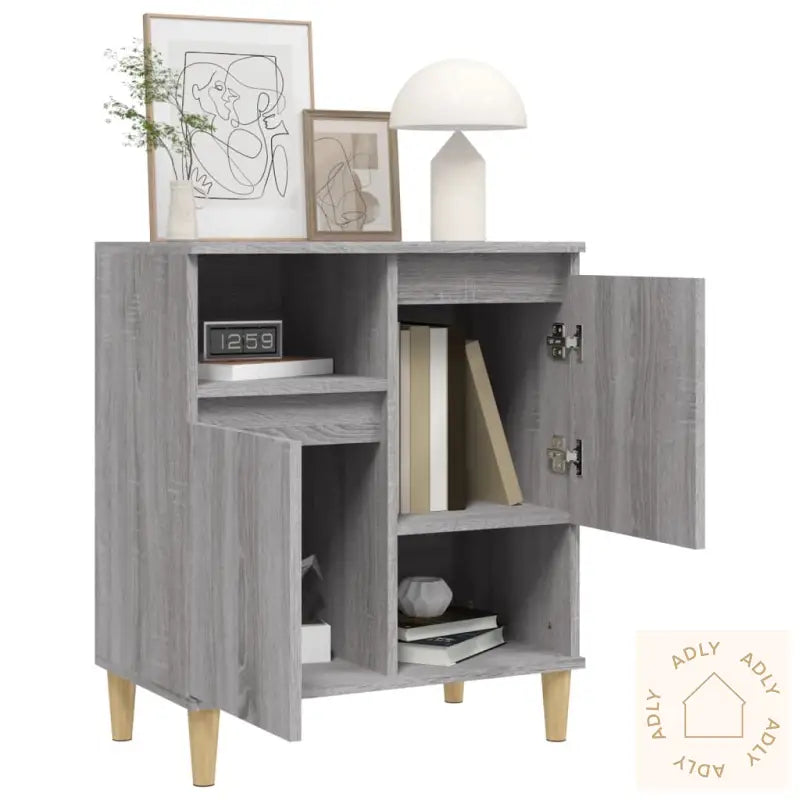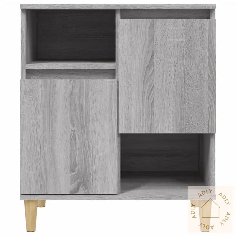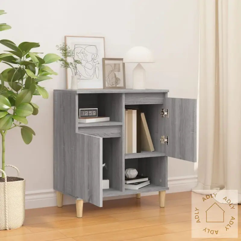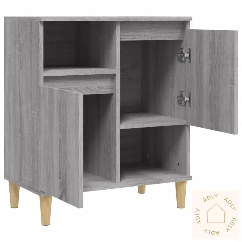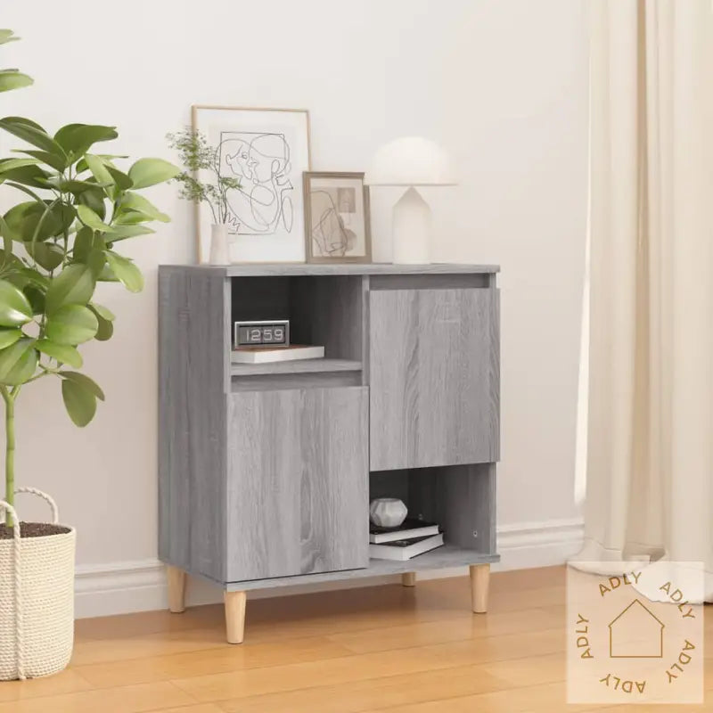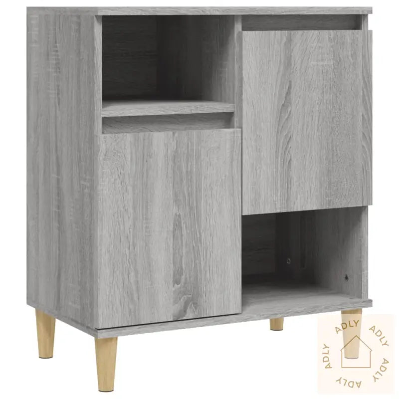 Slitesterkt materiale: Skjenken er laget av konstruert tre av eksepsjonell kvalitet, som gir en jevn og moderne overflate. Materialet gjør møbelet solid, stabilt og motstandsdyktig mot fukt, så du får glede av det lenge.Treføtter: Føttene består av heltre eukalyptus, noe som gir et naturlig, varmt uttrykk og ekstra styrke. Disse robuste bena gjør dessuten at skjenken står trygt på både tepper og harde gulv, og danner et lekkert samspill med annen innredning—uansett om det er hagemøbler eller annen oppbevaring.Rikelig med oppbevaringsplass: Skapet har fire rom og to smekre dører som skjuler rot og holder ting organisert og lett tilgjengelig. Perfekt til alt fra servise og småelektrisk på kjøkkenet, til bøker og dokumentmapper i kontoret, eller håndklær og toalettsaker på badet.Visningsfunksjon: Topplaten på skapet er ideell for å vise frem dekorative favoritter. Sett frem et par grønne planter, fotoalbum eller små vakre gjenstander som gir personlighet til rommet og matcher resten av dine møbler til hjemmet.Brede bruksområder: Dette sideskapet er utrolig allsidig, og kan brukes som både baderomsskap, kjøkkenskap, eller som et elegant oppbevaringsskap i alt fra soverom og entré til kontor og stue. Utformingen gjør at det glir rett inn sammen med både bokhyller og stående hyller.Advarsel: