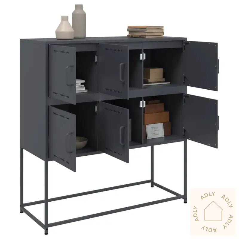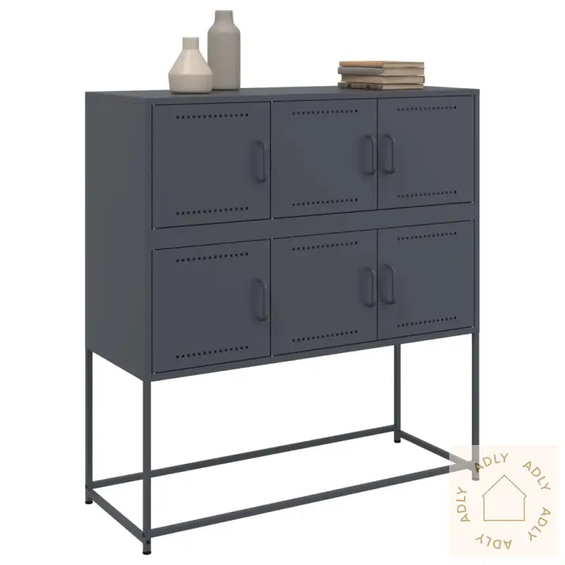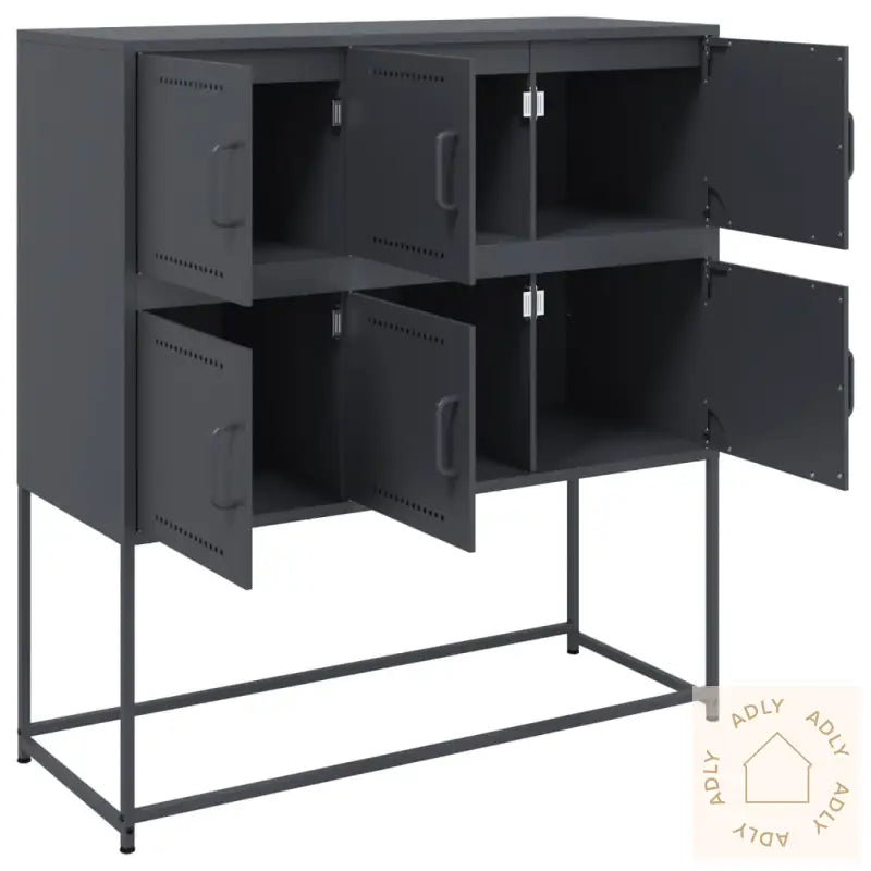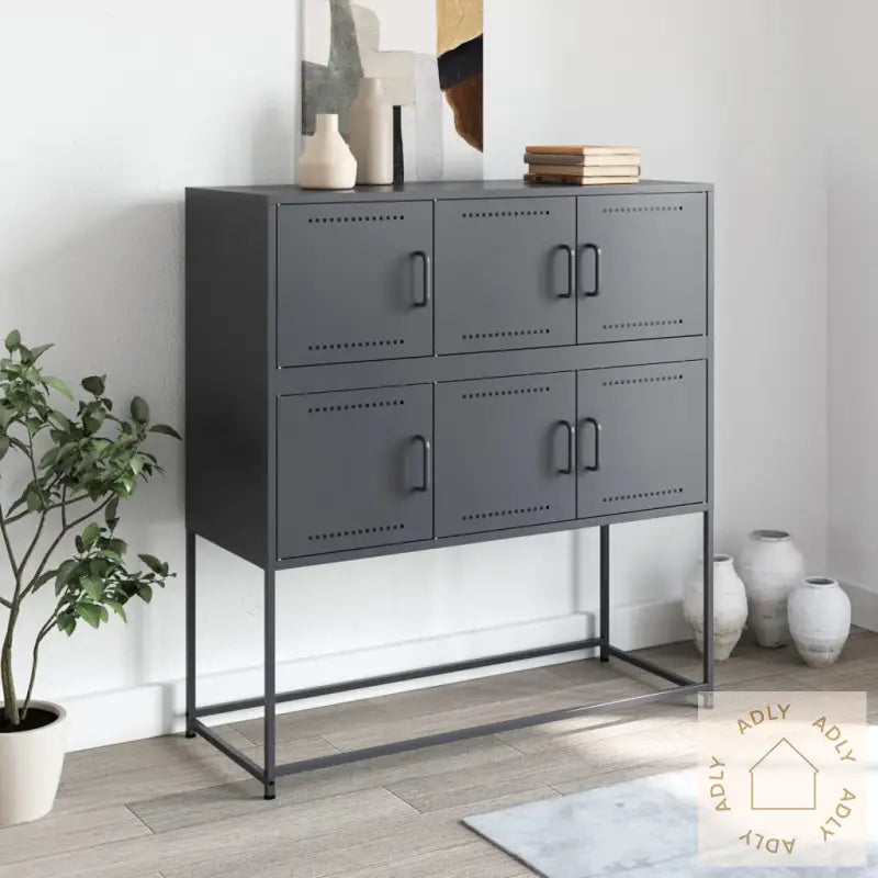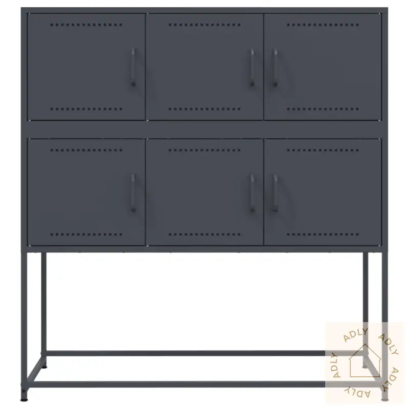 Farge: antrasittMateriale: kaldvalset stålMål: 100,5 x 39 x 107 cm (L x B x H)Med 6 dørerMontering kreves: ja