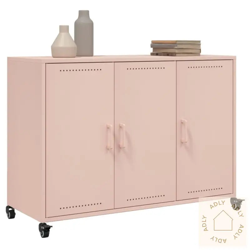 Slitesterkt materiale: Den er laget av kaldvalset stål, som er ekstra hardt og sterkt. Dette gir ikke bare høy stabilitet, men betyr også at skjenken tåler daglig bruk og varer lenge. Stålmaterialet sørger for god overflatekvalitet og presise mål, slik at møbelet ser stilrent ut fra alle vinkler.Rikelig med oppbevaringsplass: Bak de tre dørene har du masse plass til ting du vil ha lett tilgjengelig, som magasiner, bøker, fjernkontroller og småting du ellers ville lagt bort i andre skap eller bokhyller. Alt holdes samlet, synlig og godt organisert.Enkel å vedlikeholde: Takket være det glatte stålet er skjenken enkel å rengjøre – bare tørk av med en fuktig klut ved behov. Du får et praktisk møbel som krever minimalt med vedlikehold og holder seg pent i mange år.Lett å flytte: Skapet står på fire hjul, så det er superlett å flytte enten du skal ommøblere eller raskt endre uttrykket i stuen. Når du plasserer skjenken der du vil, står den stødig og stabilt.Farge: rosaMateriale: kaldvalset stålMål: 100,5 x 39 x 72 cm (L x B x H)Med 3 dørerMontering kreves: ja