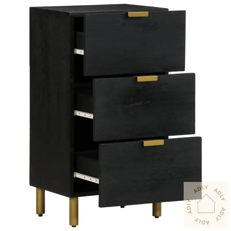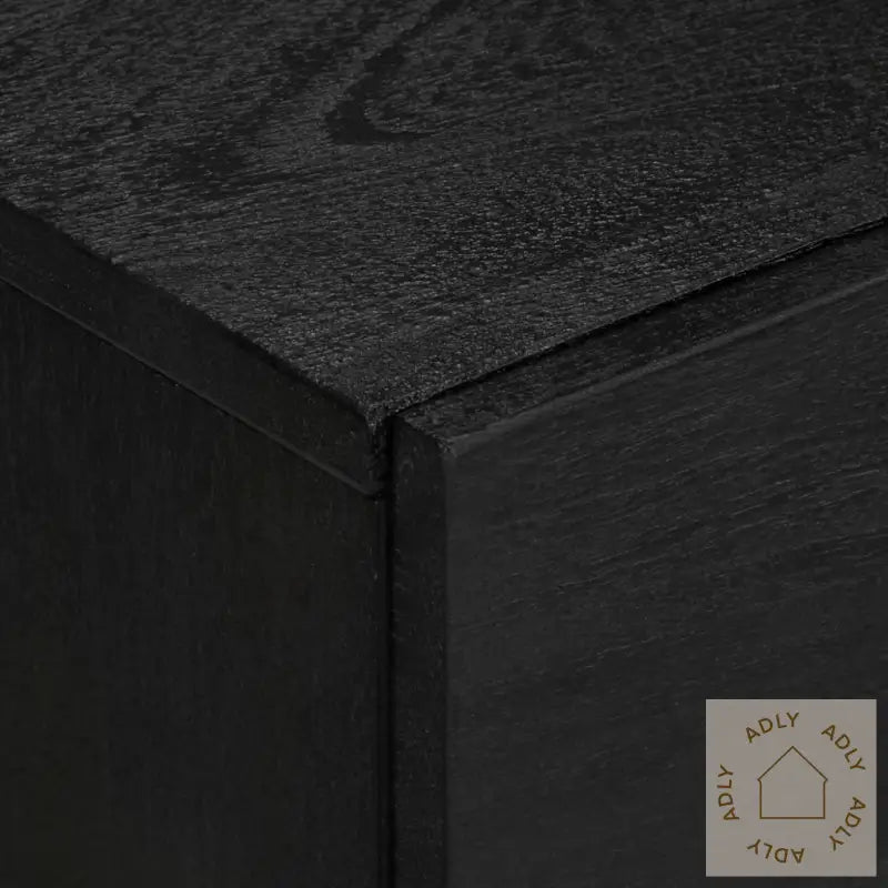 For økt trygghet bør produktet festes til veggen med den medfølgende sikringen, slik at du unngår at det velter.Farge: svartMaterialer: konstruert tre, heltre mango, messingSamlet mål: 40 x 33 x 75 cm (L x B x H)Høyde fot: 10 cmMontering kreves: jaLegal Documents: